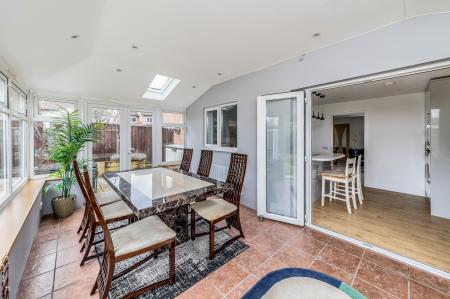 This impressive detached family home offers 1,364 square feet of very flexible and superbly presented accommodation. The property has recently benefited from a garage conversion to provide a very flexible family room which could also easily be used as a large study. The kitchen/dining room has recently been refitted to very high standards and is complemented by a refitted separate utility room and refitted shower room, benefiting from a contemporary white suite. To the rear a wonderful and very spacious sunroom has been created providing a delightful and very flexible further reception room and benefits from two sets of double glazed doors leading to the landscaped rear gardens.