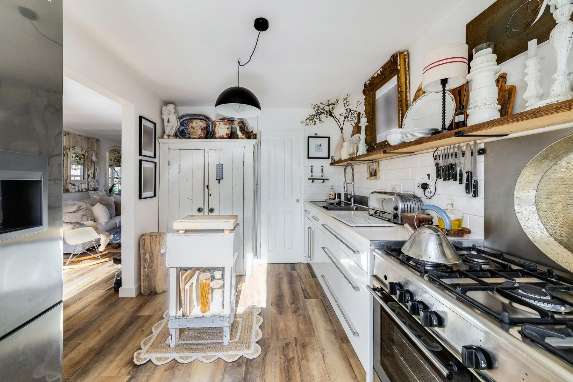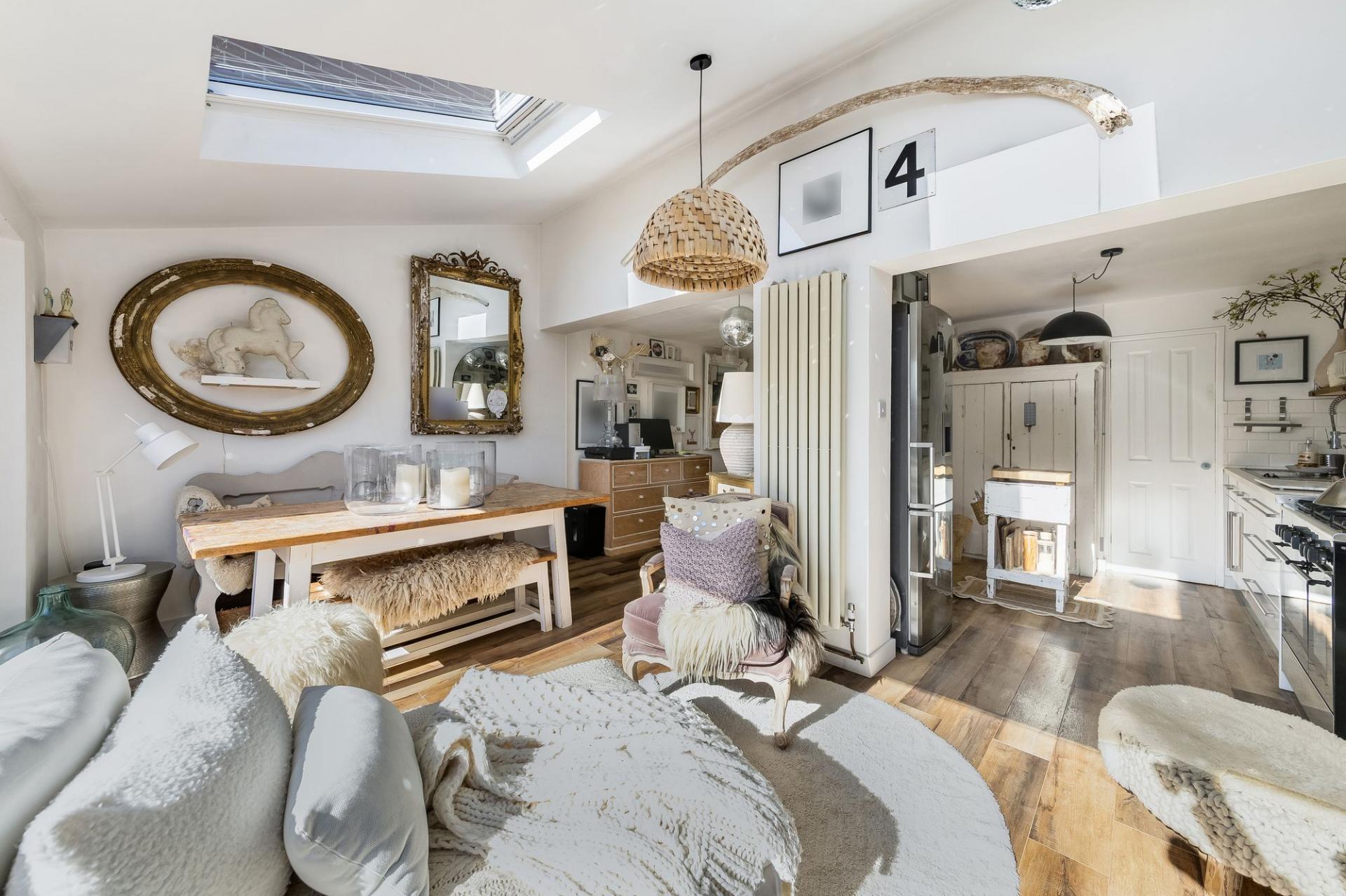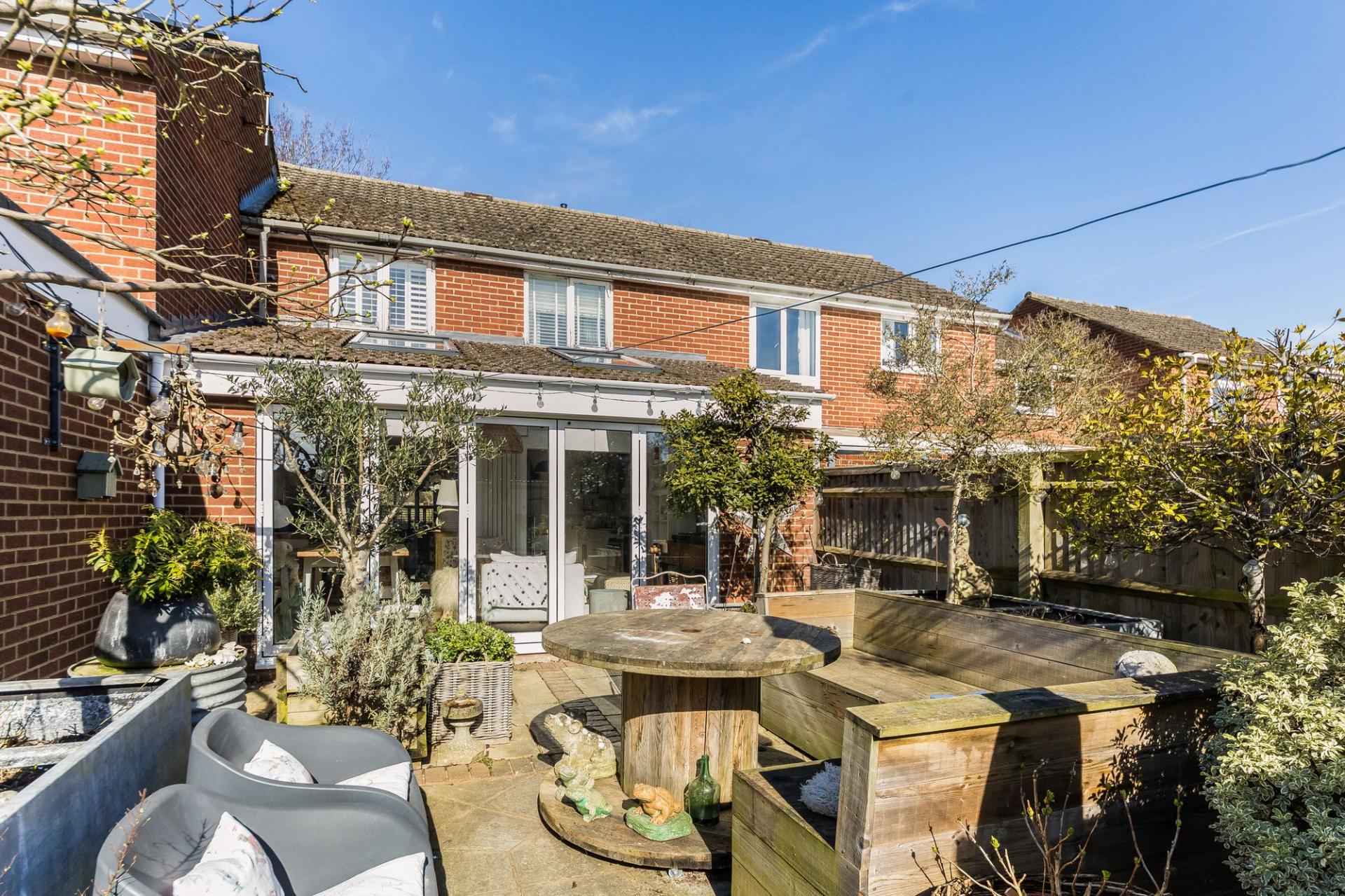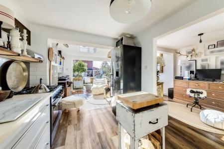 - Stylish kitchen partly open-plan to light and airy dining/family room with part vaulted ceiling and bi-fold doors opening onto the southerly facing rear garden