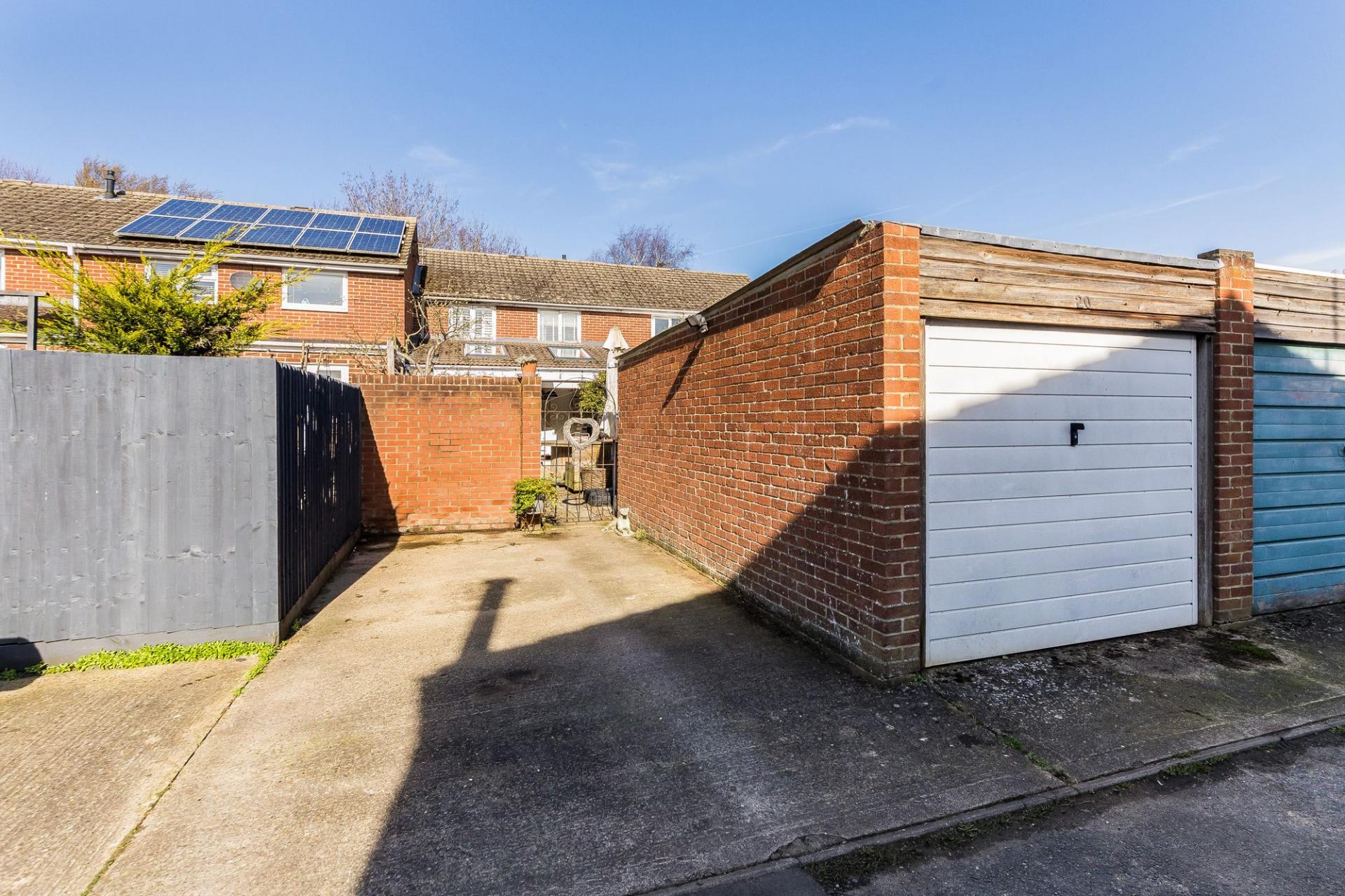 - Southerly facing rear gardens predominantly paved and fully enclosed by fencing before leading to the garage and private parking space, approach from the rear