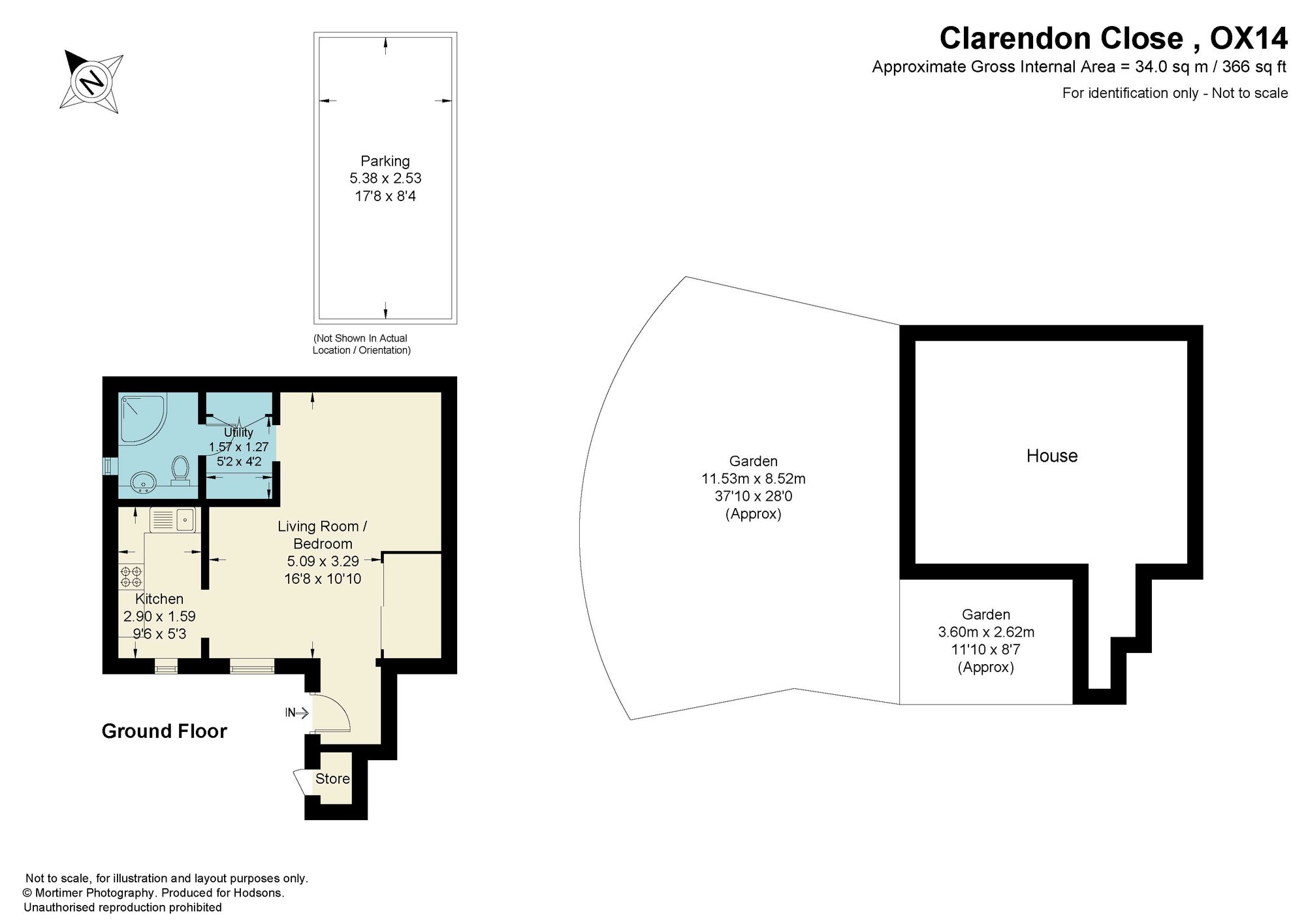 - Open plan living room through to bedroom area with space for wardrobe/storage cupboard