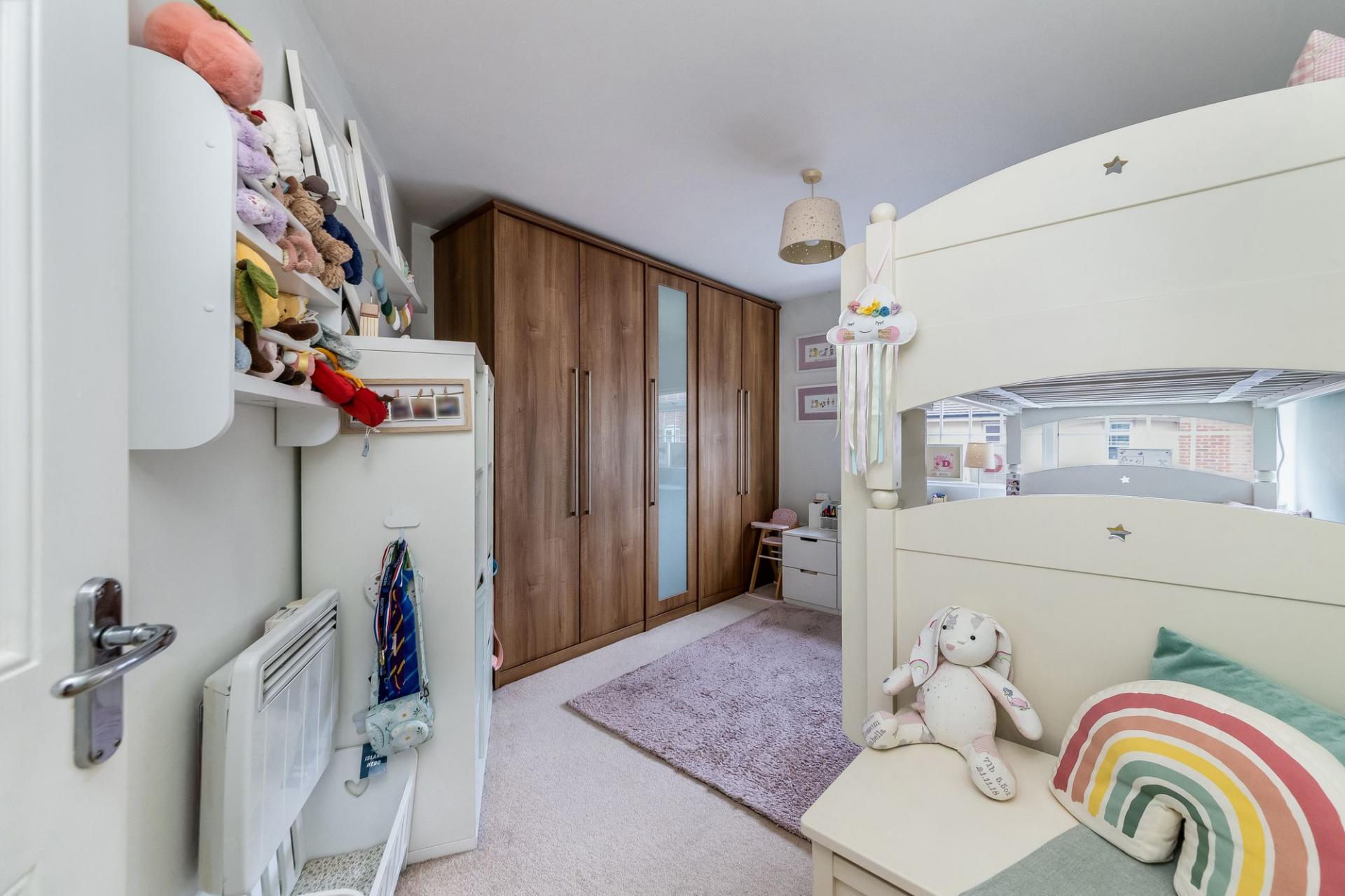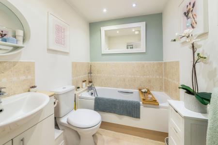 - Second double bedroom complemented by family bathroom with contemporary white suite