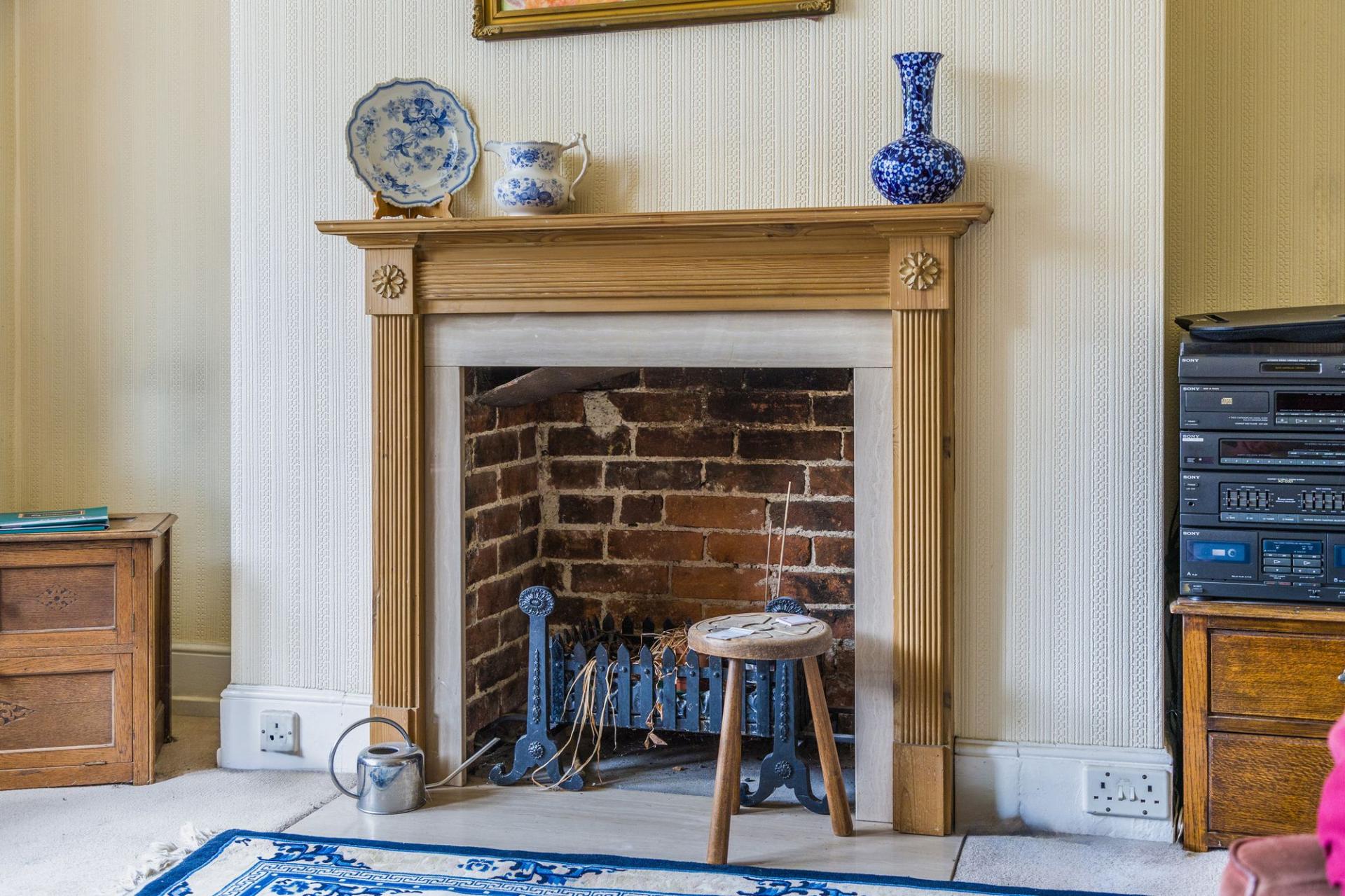 - Delightful front living room benefitting from large bay window and attractive fireplace complemented by separate dining room with further brick fireplace