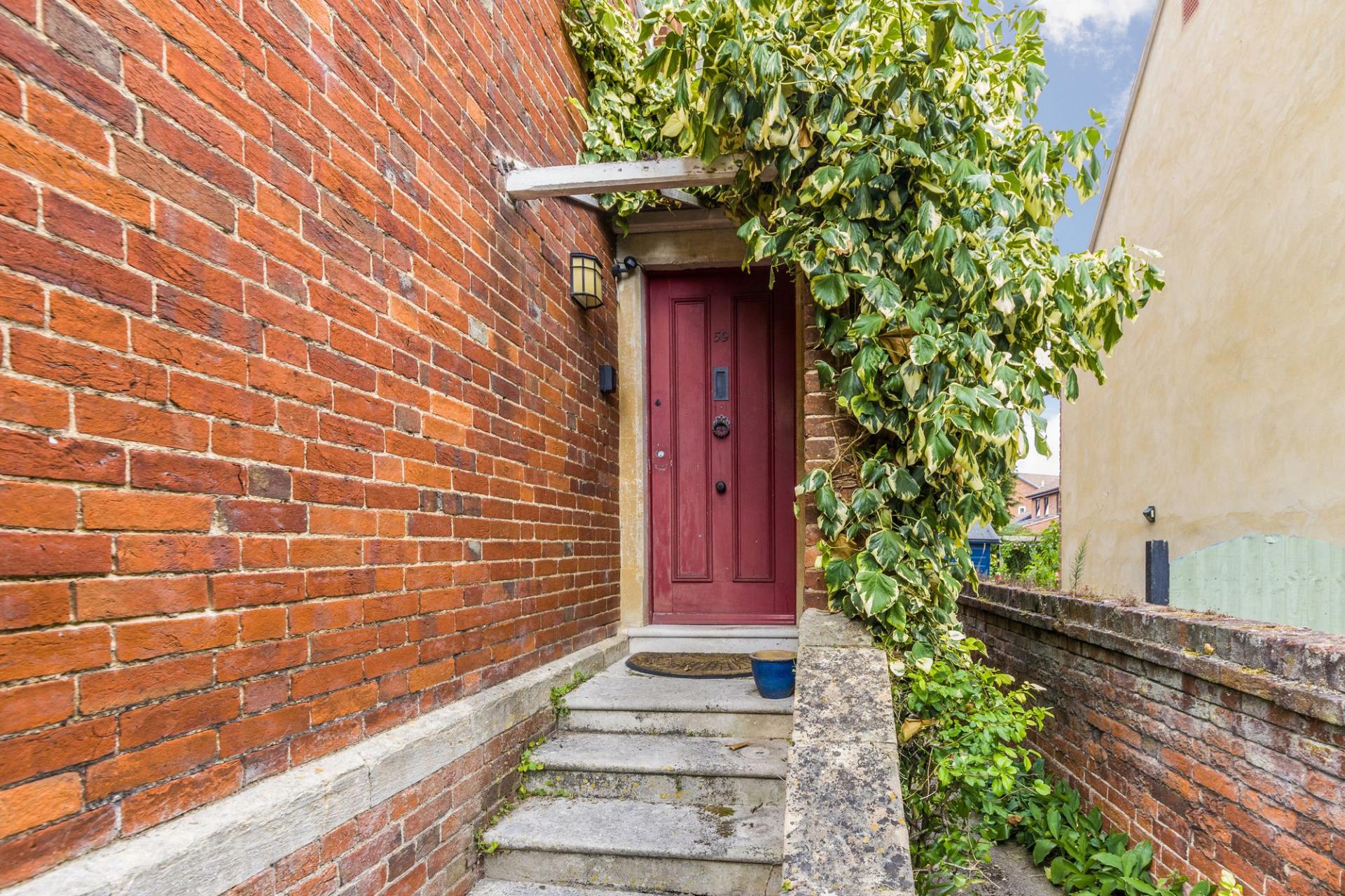 - Alternative pedestrian side access leading to steps rising to entrance hall