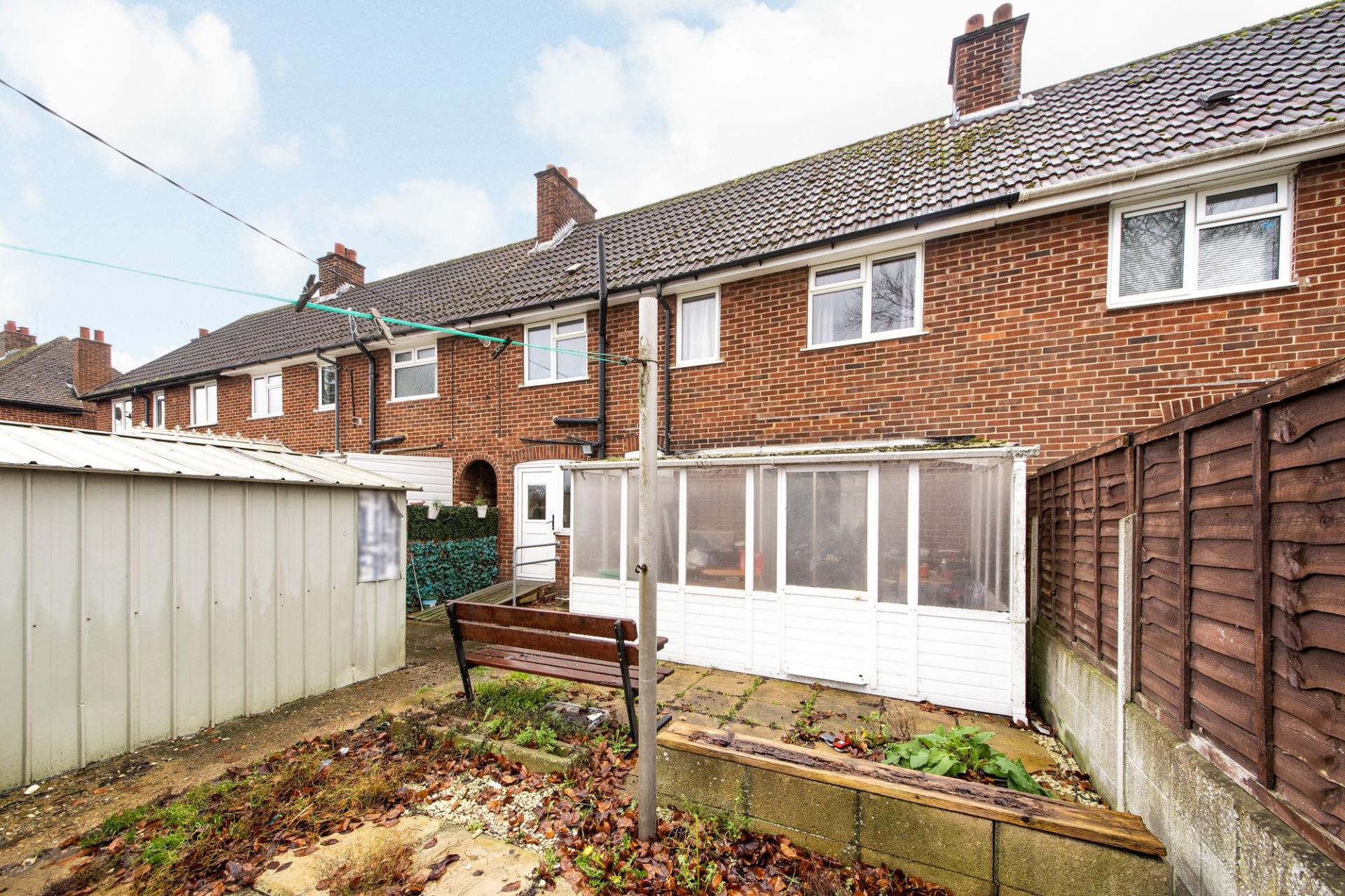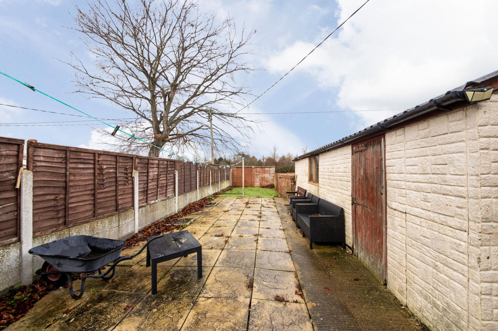 - Large fully enclosed rear gardens with patio and lawns with gated rear access leading to detached garage and offering potential to extend the existing accommodation