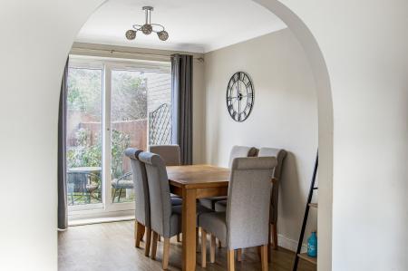 - Entrance hall leading through to open plan living room with attractive central feature fireplace leading to dining room with doors to the rear gardens