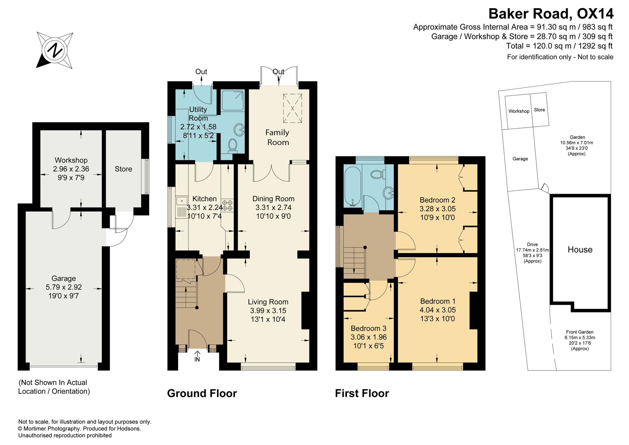 - Driveway parking for several vehicles leading to detached garage with extended workshop and garden store