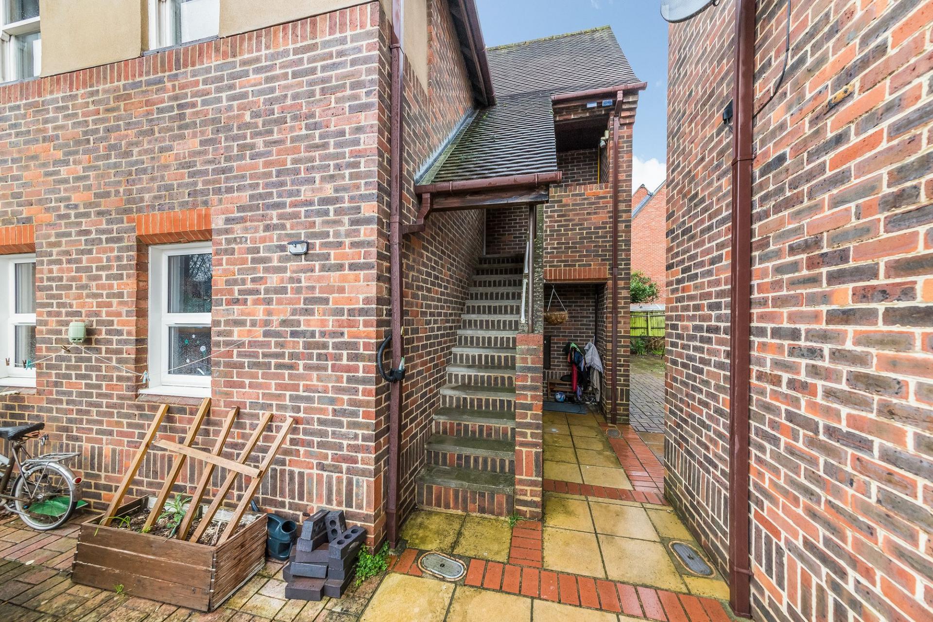 - External staircase rising to private front door and entrance hall