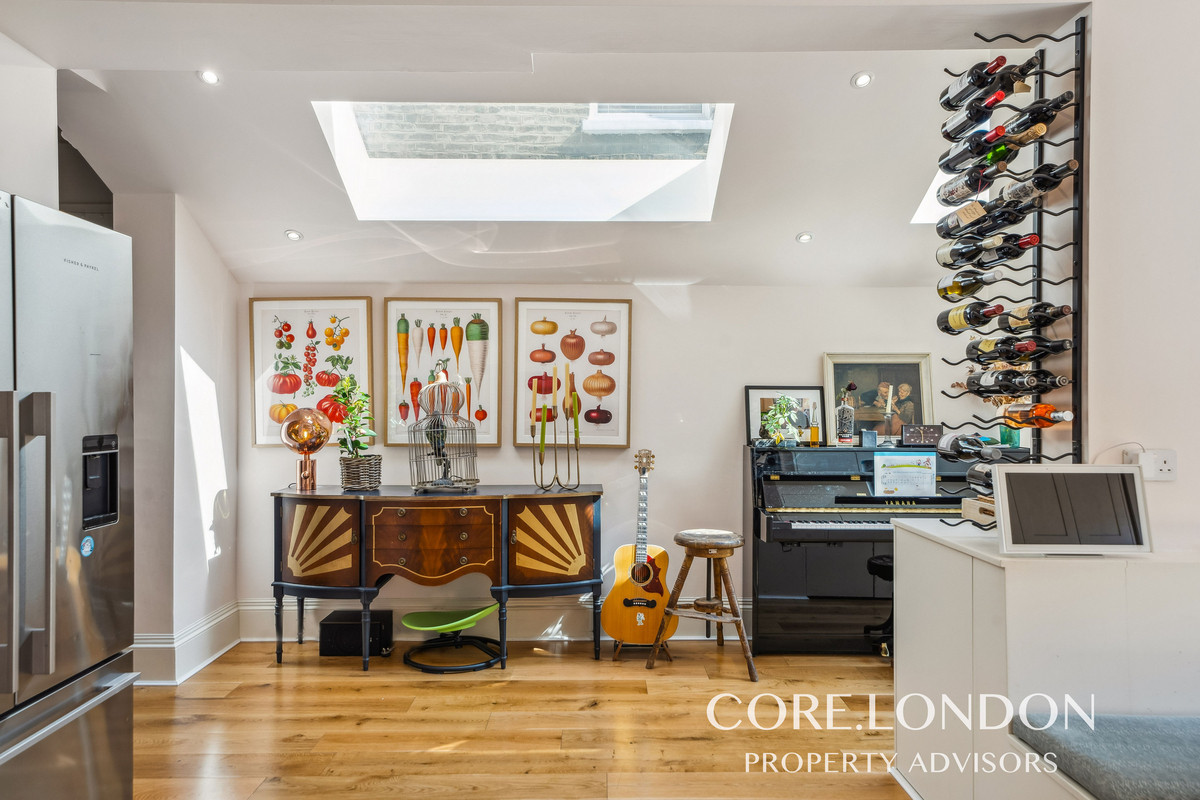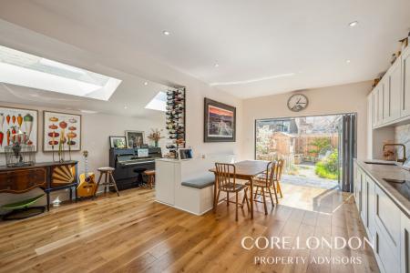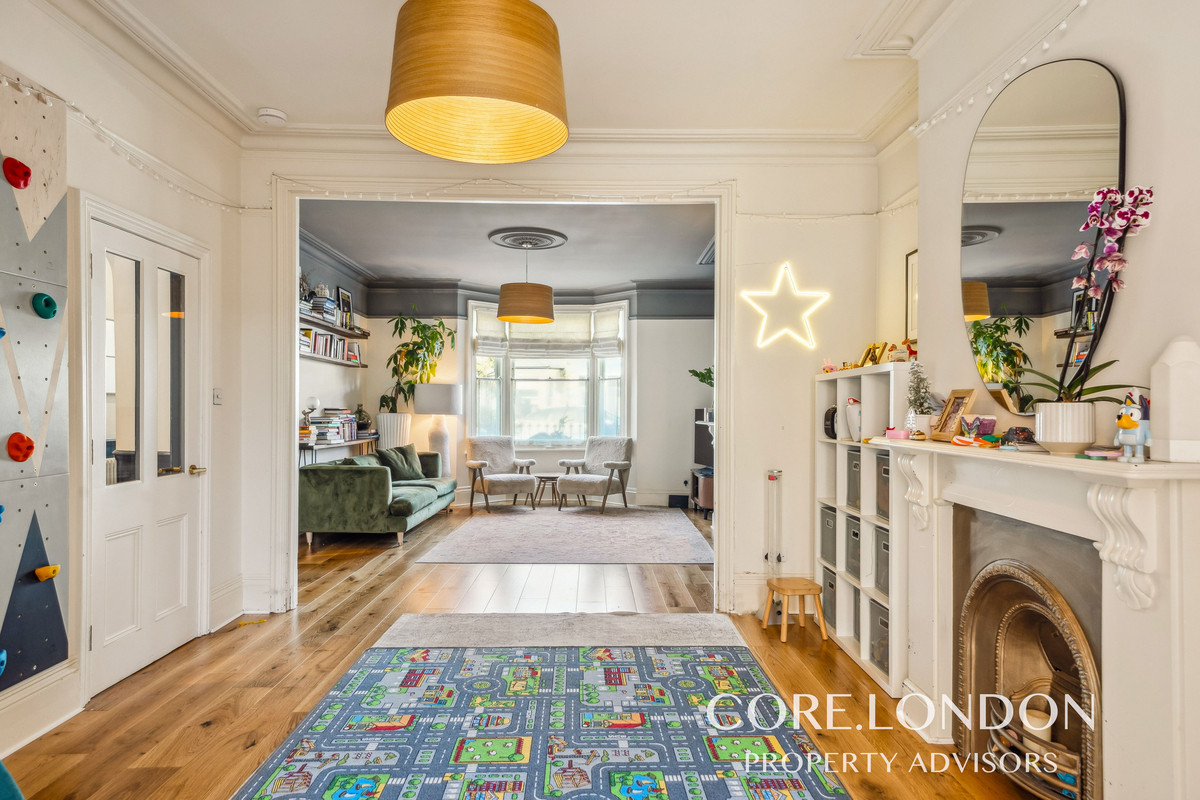 The property benefits from high ceilings and retains a wealth of original character throughout, including picture rails, cornicing, and ceiling roses. The current owners have undertaken a thoughtful renovation during their ownership, redesigning the ground floor extension, installing a sleek new kitchen and bathrooms, landscaping the rear garden, and upgrading the electrics and plumbing throughout much of the house. They also converted the front loft space.