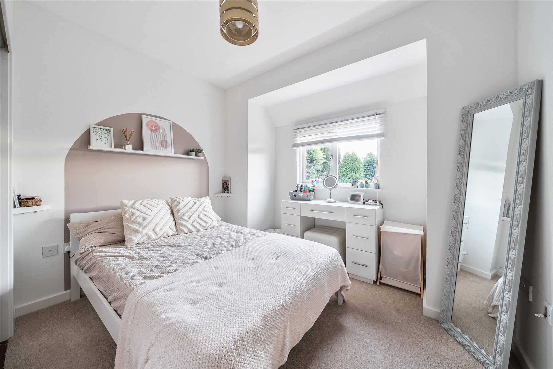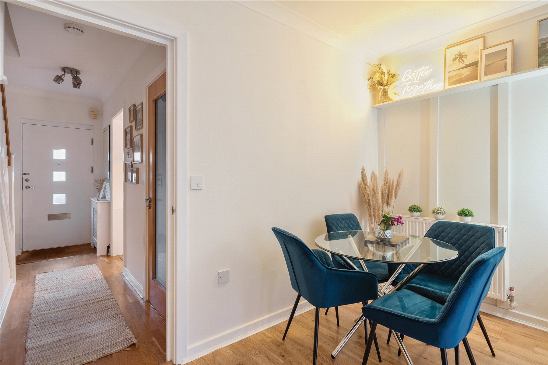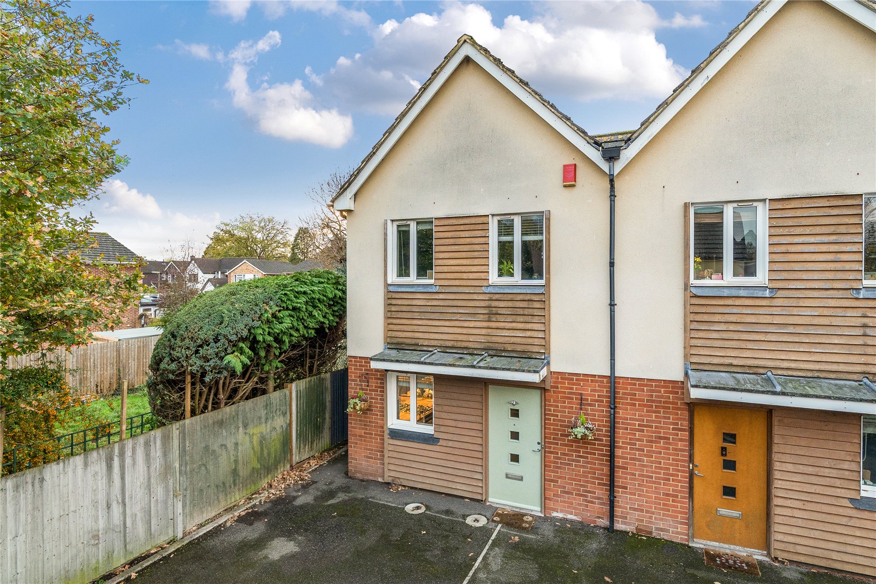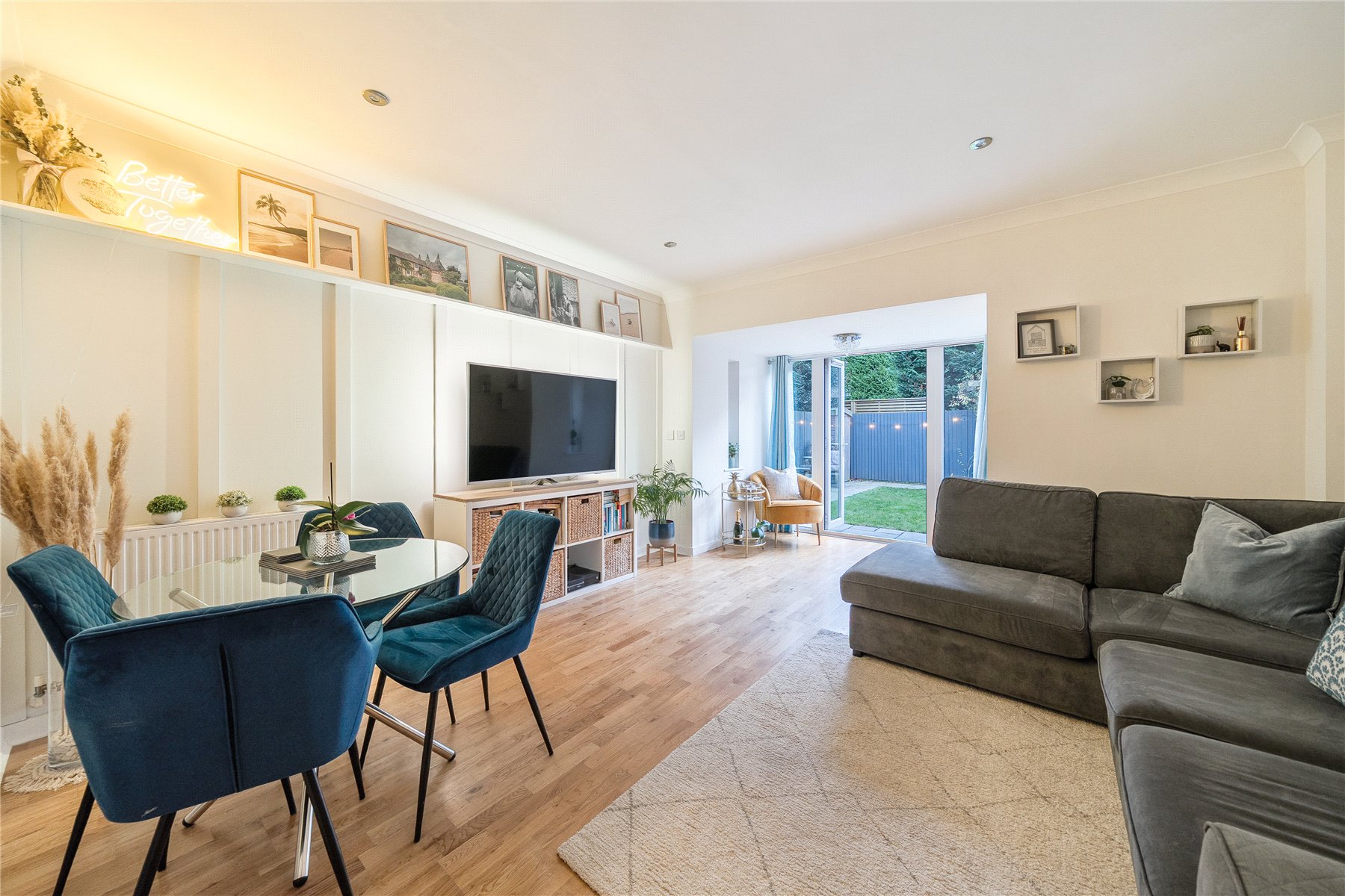 Nestled in a cul-de-sac in New Haw, this beautifully presented three-bedroom semi-detached home offers modern living and easy access to local amenities. At the front of the property sits a modern, well-designed kitchen, finished with contemporary units and ample worktop space. Thoughtfully laid out for everyday cooking, it offers good storage solutions and efficient use of space, making it a practical and attractive area for meal preparation. To the rear, the home opens into a spacious lounge/diner, flooded with natural light and featuring patio doors leading directly onto the garden, creating a seamless indoor-outdoor flow. A convenient downstairs WC completes the ground floor. Upstairs, you’ll find three well-appointed bedrooms, including a generous primary bedroom with its own contemporary en-suite shower room. The primary bathroom is fitted with a classic white suite and serves the remaining bedrooms. Outside, the property benefits from side gate access, a private rear garden laid to lawn with a patio area, ideal for relaxing or entertaining, and off-street parking to the front. A superb location, with excellent road links, attractive canal-sidewalks, and a handy parade of local shops close by. The home is also within reach of West Byfleet and Byfleet & New Haw railway stations, providing convenient routes into London and beyond. A fantastic opportunity to secure a modern, well-located home in a sought-after area, perfect for families who value quality schooling and convenience.