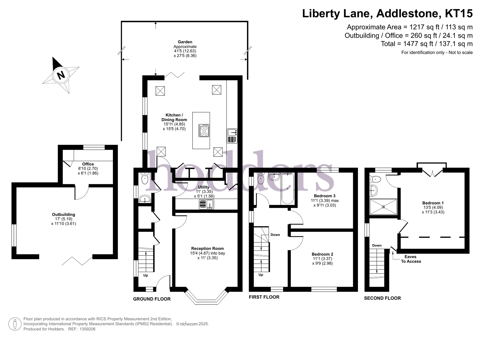 Perfectly positioned just moments from local amenities in the highly sought-after town of Addlestone, this beautifully presented three-bedroom semi-detached home offers spacious, stylish living across three floors.The heart of this impressive home is the luxurious open-plan kitchen/dining room. With its central island, vaulted skylights, and sleek bi-fold doors opening onto the garden, it creates a light-filled space ideal for family life and entertaining. The kitchen is finished to a high specification, boasting granite worktops, integrated appliances, and underfloor heating, while a separate utility room provides practical storage and space for additional appliances.The ground floor also features a generously sized, elegant living room with a charming bay window, bespoke shutters, and unique coving. Off the hallway, you'll find a refurbished downstairs cloakroom.Upstairs, the first floor is home to a spacious main bedroom with a Juliet balcony and modern en-suite shower room. Two further double bedrooms and a contemporary family bathroom are arranged across the upper floors, providing flexible accommodation for growing families.Externally, the property benefits from a modern block-paved driveway with ample parking, side access to the garden, and a superb outbuilding with bi-fold doors perfect for use as a games room, home office, or gym. The rear garden itself is generous, private, and low maintenance.Situated between Weybridge and historic Chertsey, Addlestone combines the charm of a small town with excellent modern amenities. The vibrant Addlestone One development offers restaurants, retail, a cinema, lifestyle gym, and hotel, ensuring everything you need