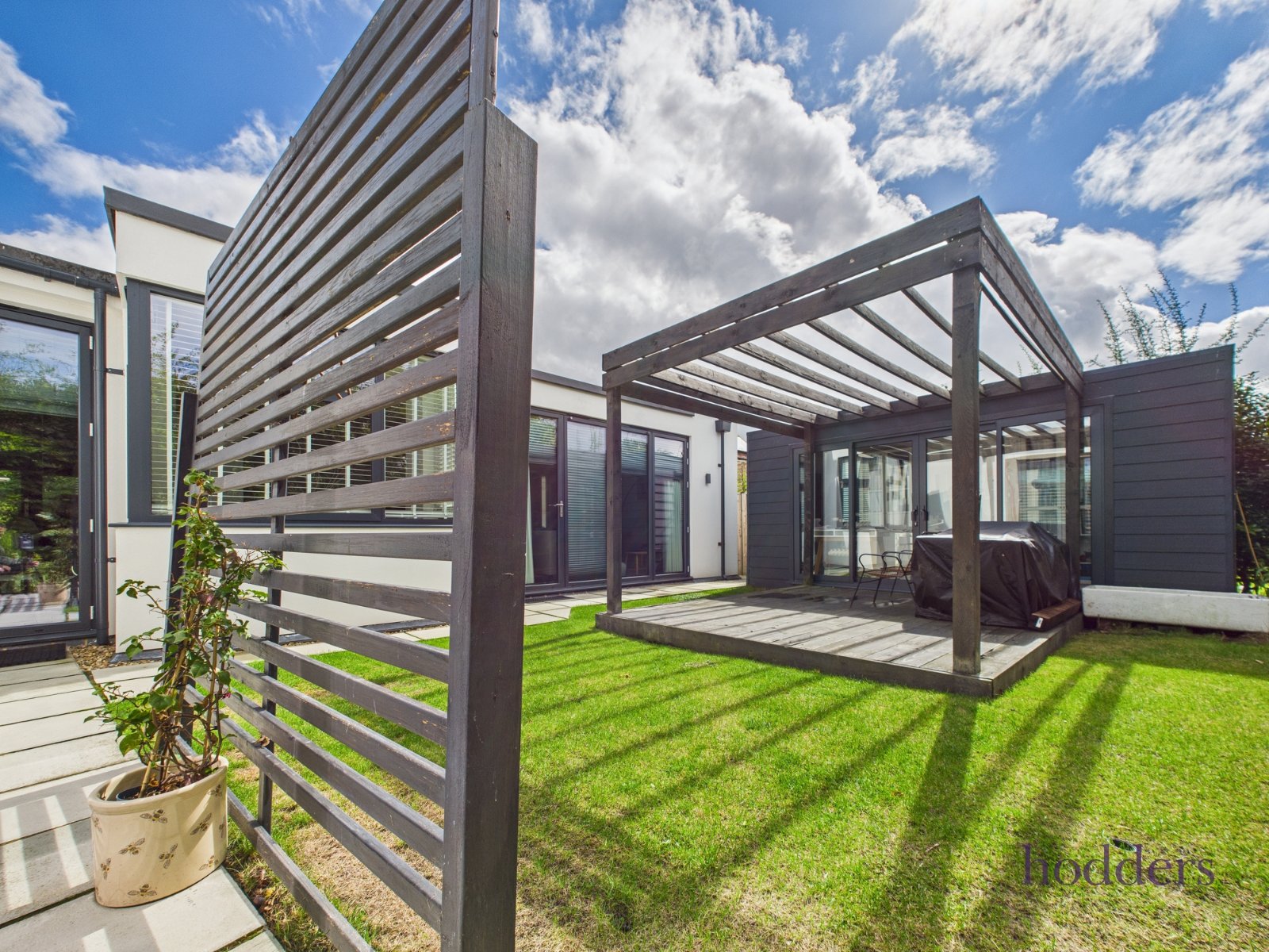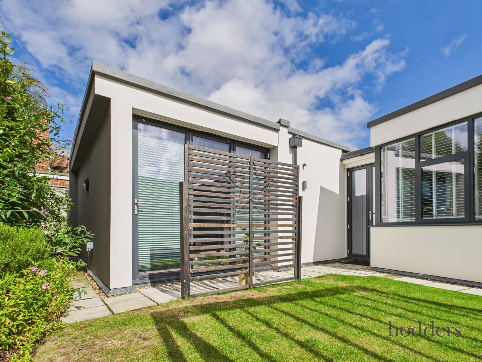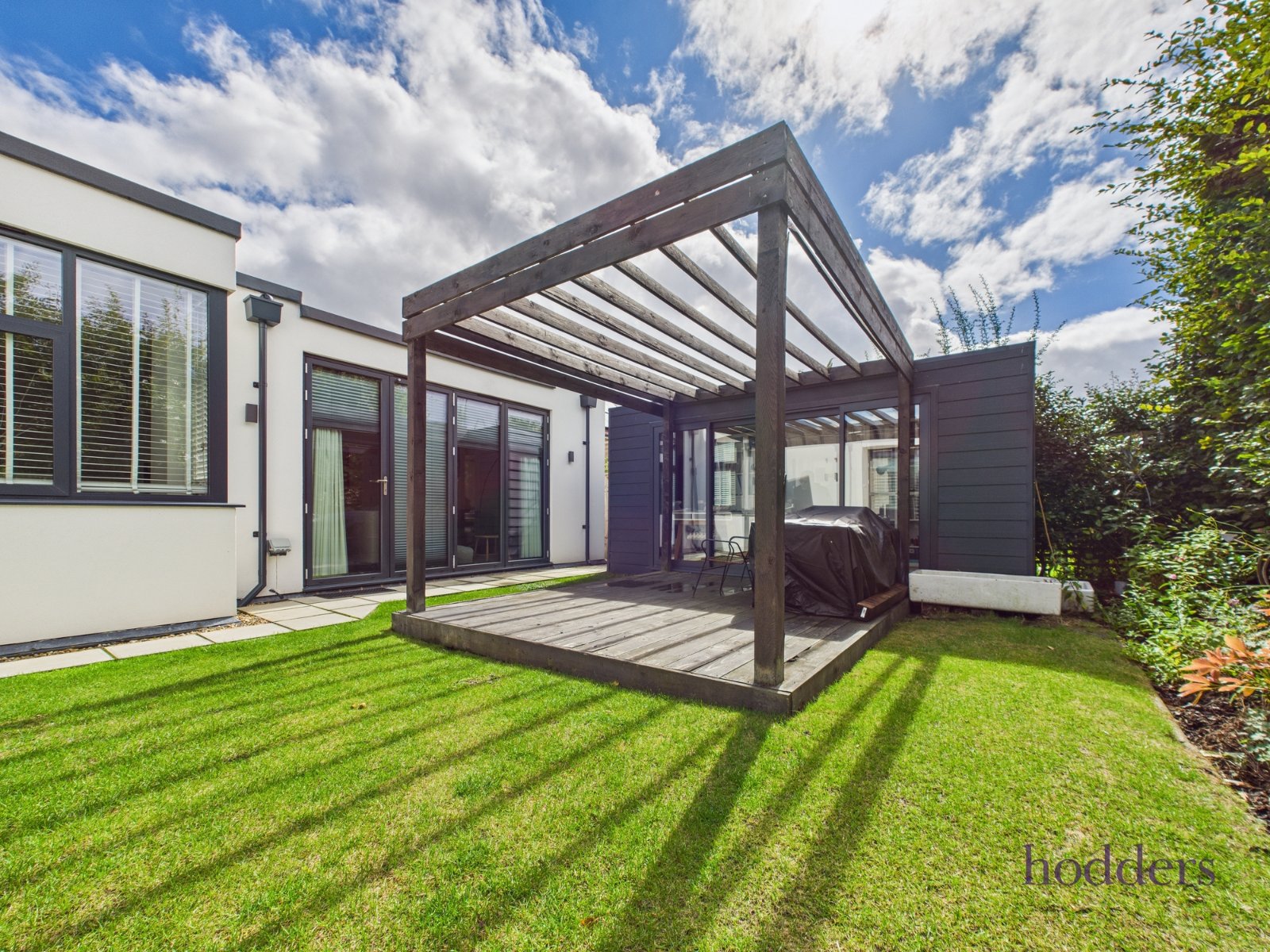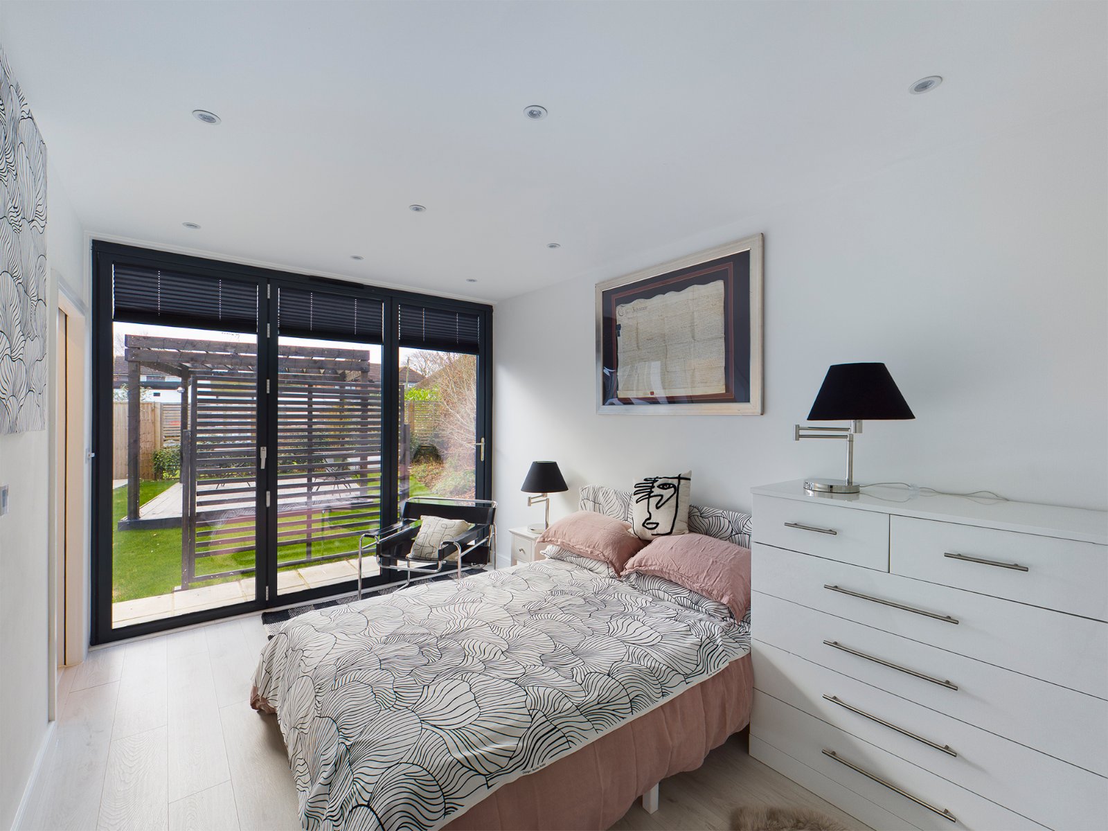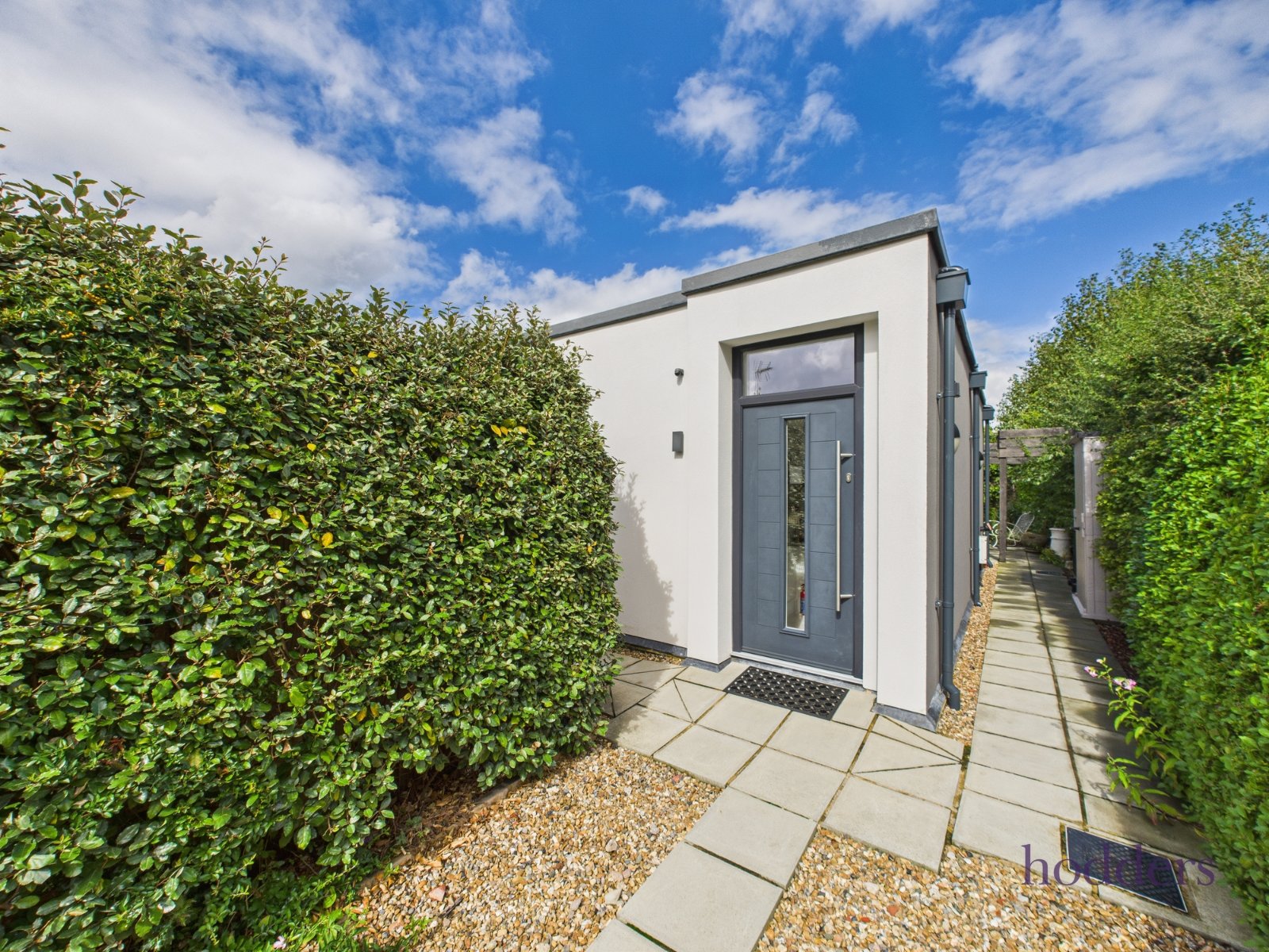 The accommodation consists of a luxury modern fitted kitchen with integral appliances, a bright and airy living area with bi-fold doors out to the secluded garden, main bedroom, again with bi-fold doors and a ensuite shower room, a further single bedroom, also with bi-fold doors and a three piece family bathroom suite. The outside spaces wraps around the entire home with patio and lawn areas, including a Pergola ideal for alfresco dining all year round. A noteworthy addition to this