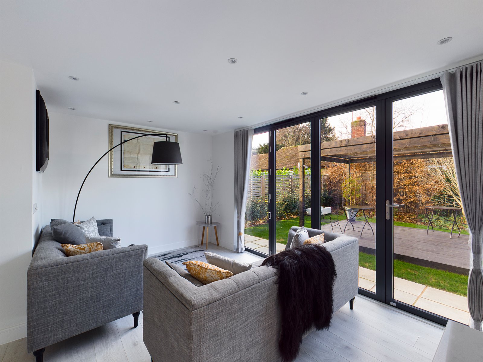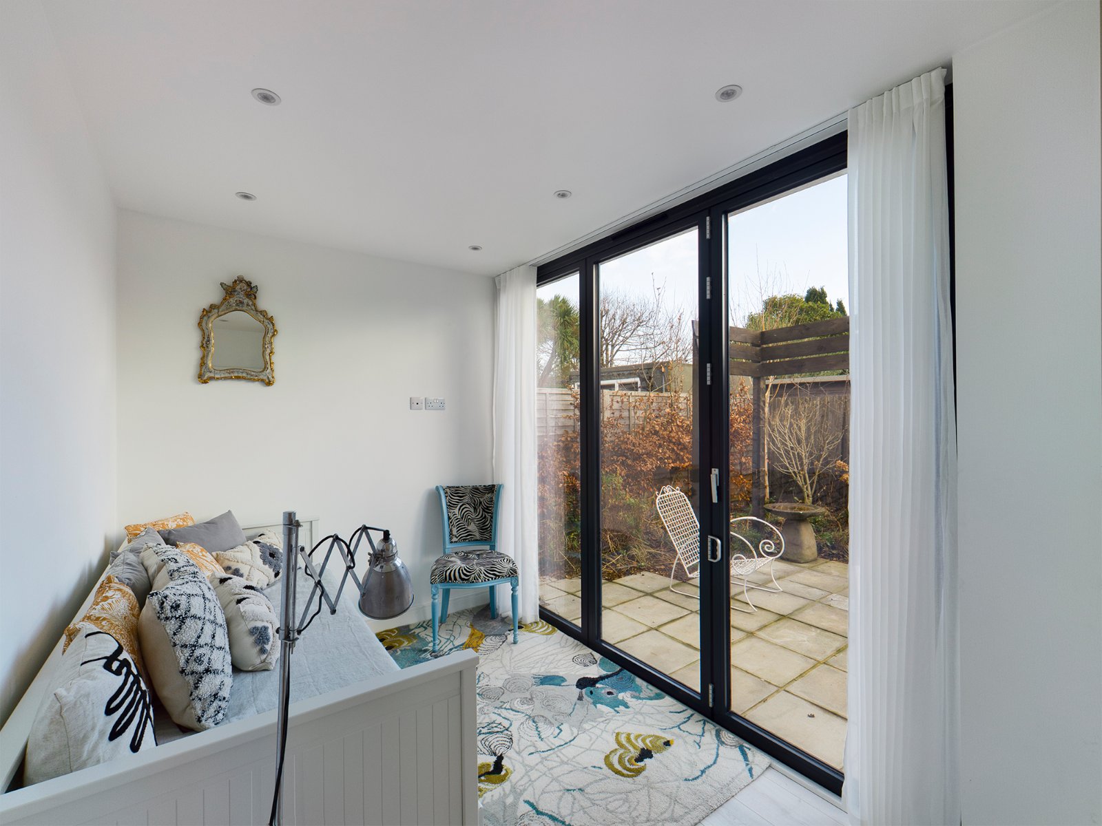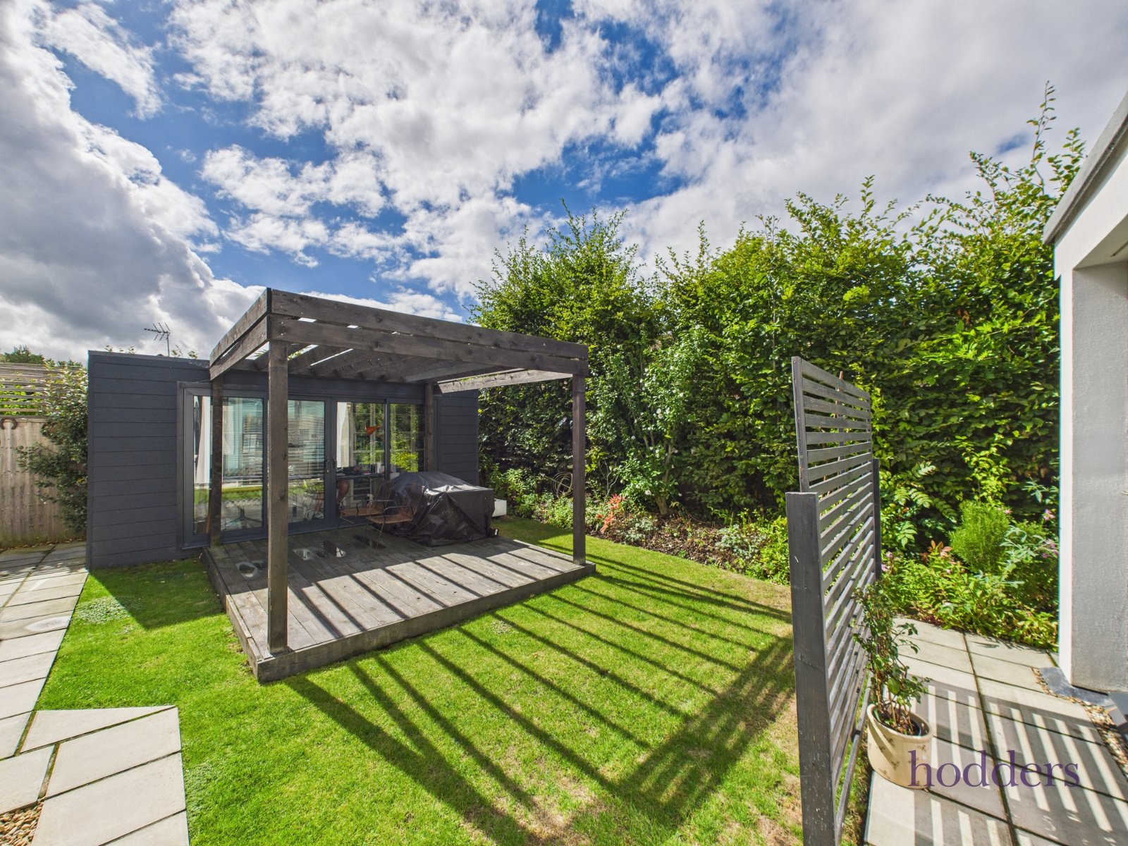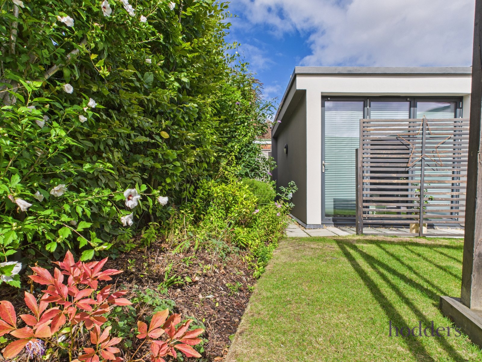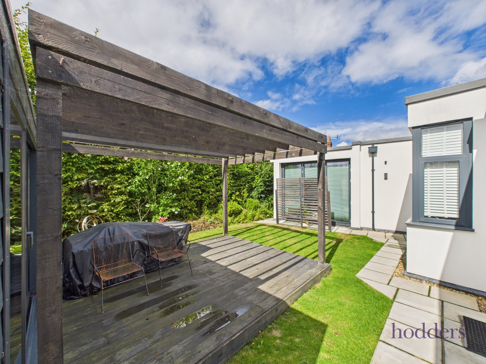 The accommodation consists of a luxury modern fitted kitchen with integral appliances, a bright and airy living area with bi-fold doors out to the secluded garden, main bedroom, again with bi-fold doors and a ensuite shower room, a further single bedroom, also with bi-fold doors and a three piece family bathroom suite. The outside spaces wraps around the entire home with patio and lawn areas, including a Pergola ideal for alfresco dining all year round. A noteworthy addition to this