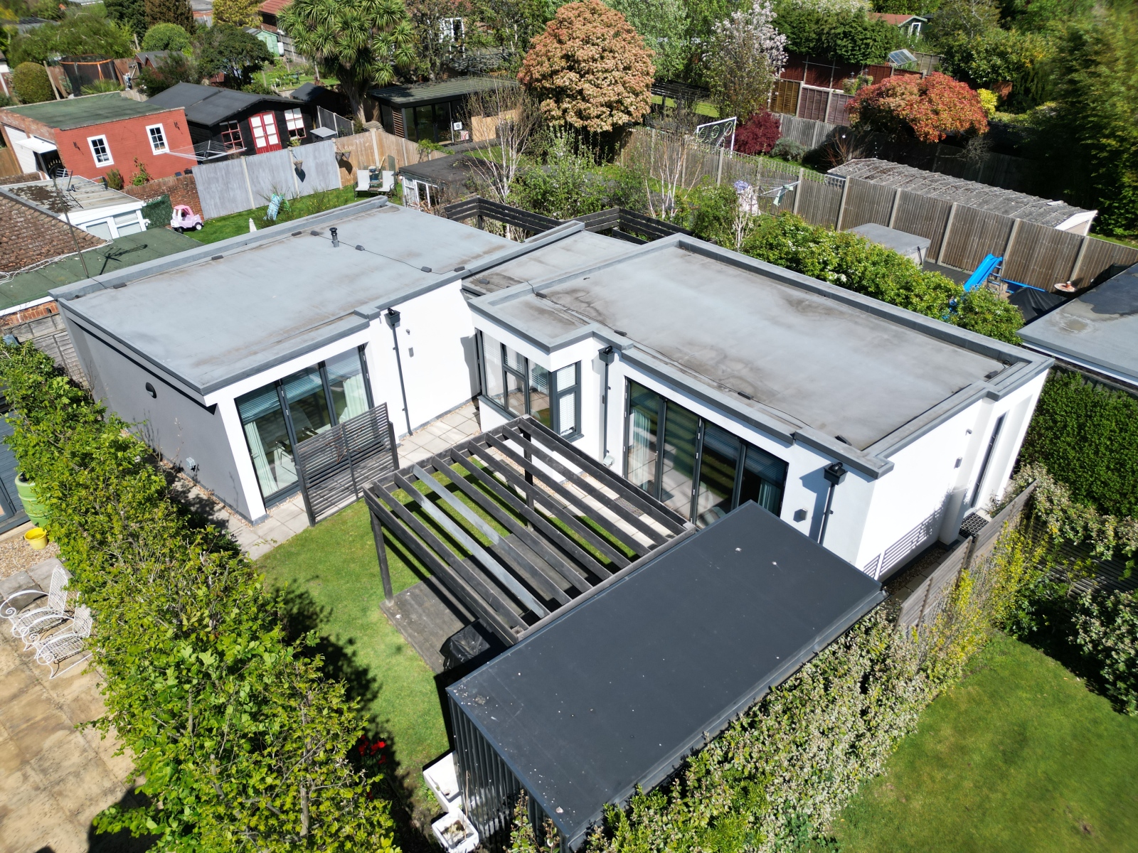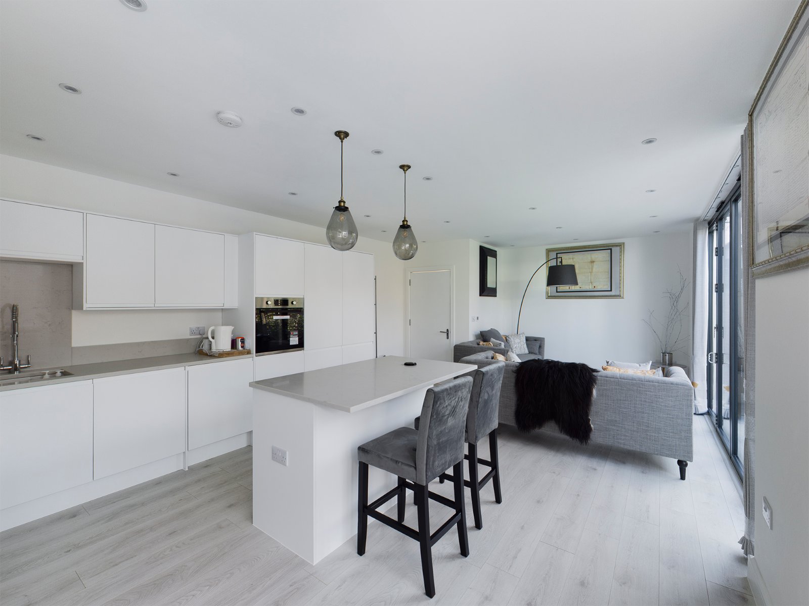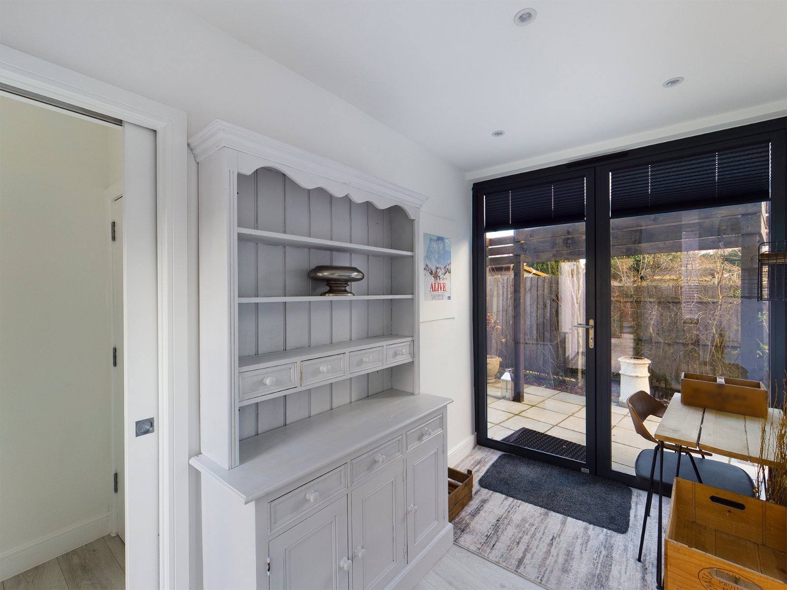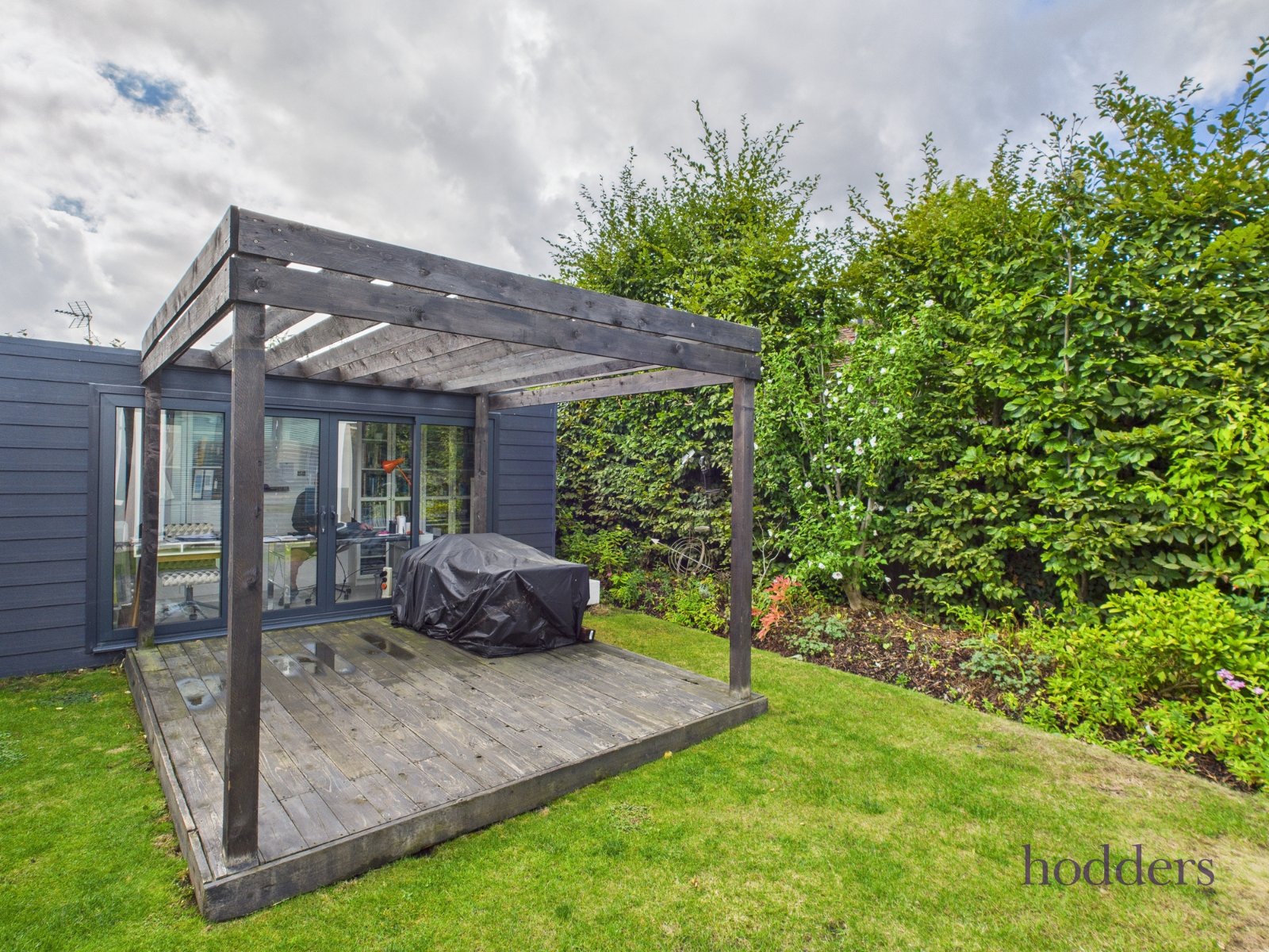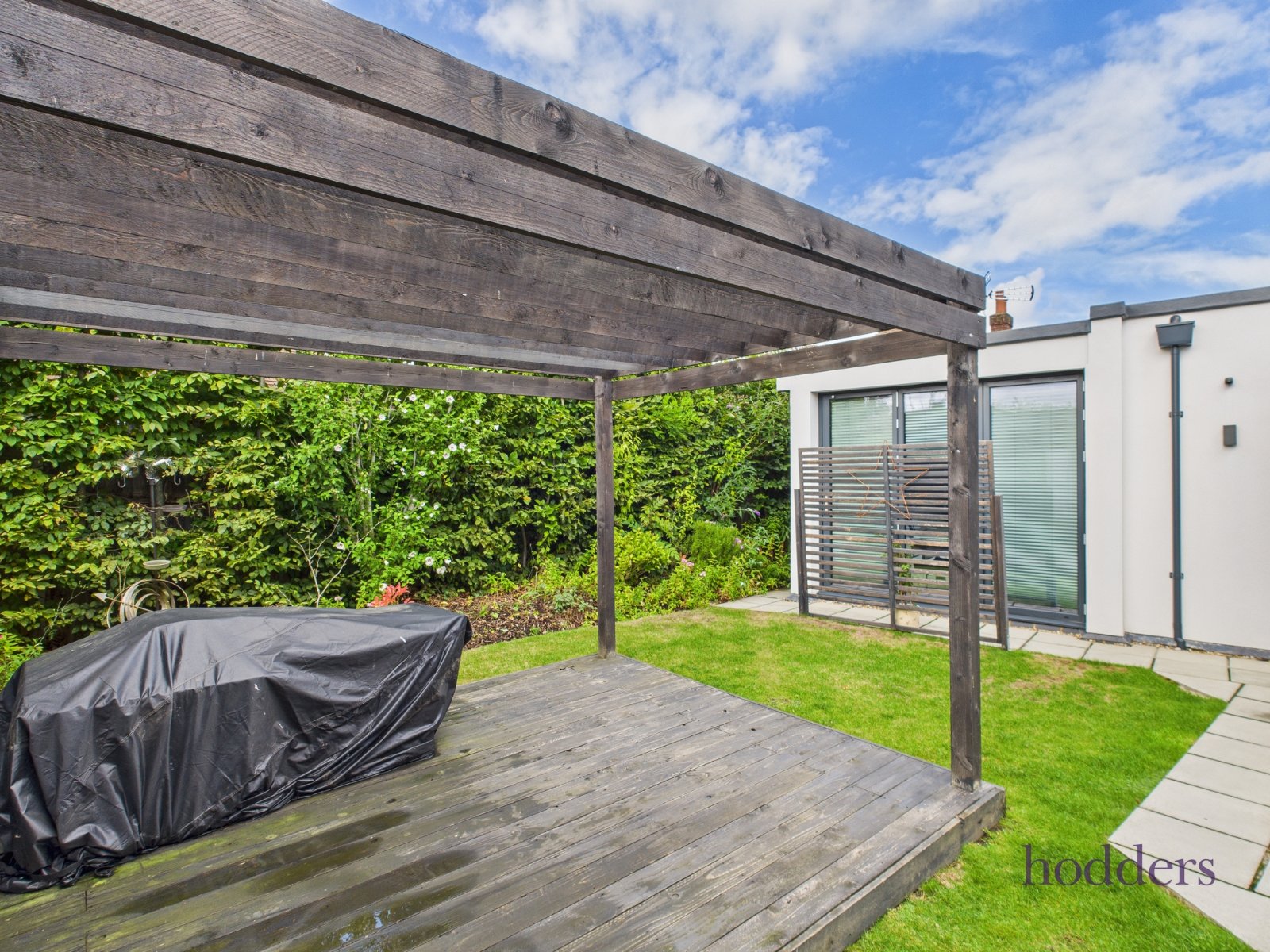 The accommodation consists of a luxury modern fitted kitchen with integral appliances, a bright and airy living area with bi-fold doors out to the secluded garden, main bedroom, again with bi-fold doors and a ensuite shower room, a further single bedroom, also with bi-fold doors and a three piece family bathroom suite. The outside spaces wraps around the entire home with patio and lawn areas, including a Pergola ideal for alfresco dining all year round. A noteworthy addition to this