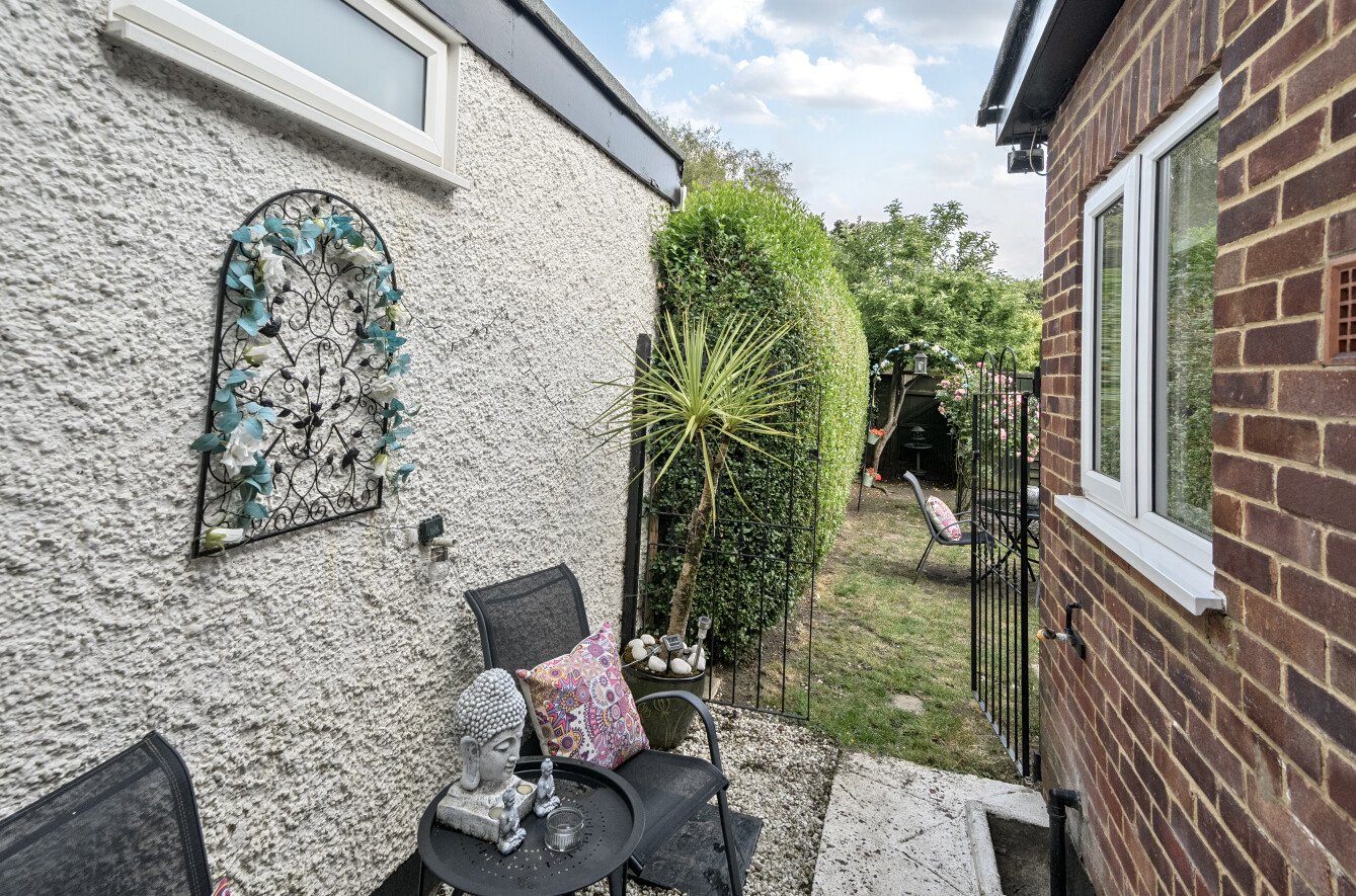 The property includes off-road parking at the front and a pretty south-facing rear garden. via a rear door off the kitchen With both patio and lawn areas, as well as gated rear access, it's ideal for outdoor entertaining and easy garden maintenance.