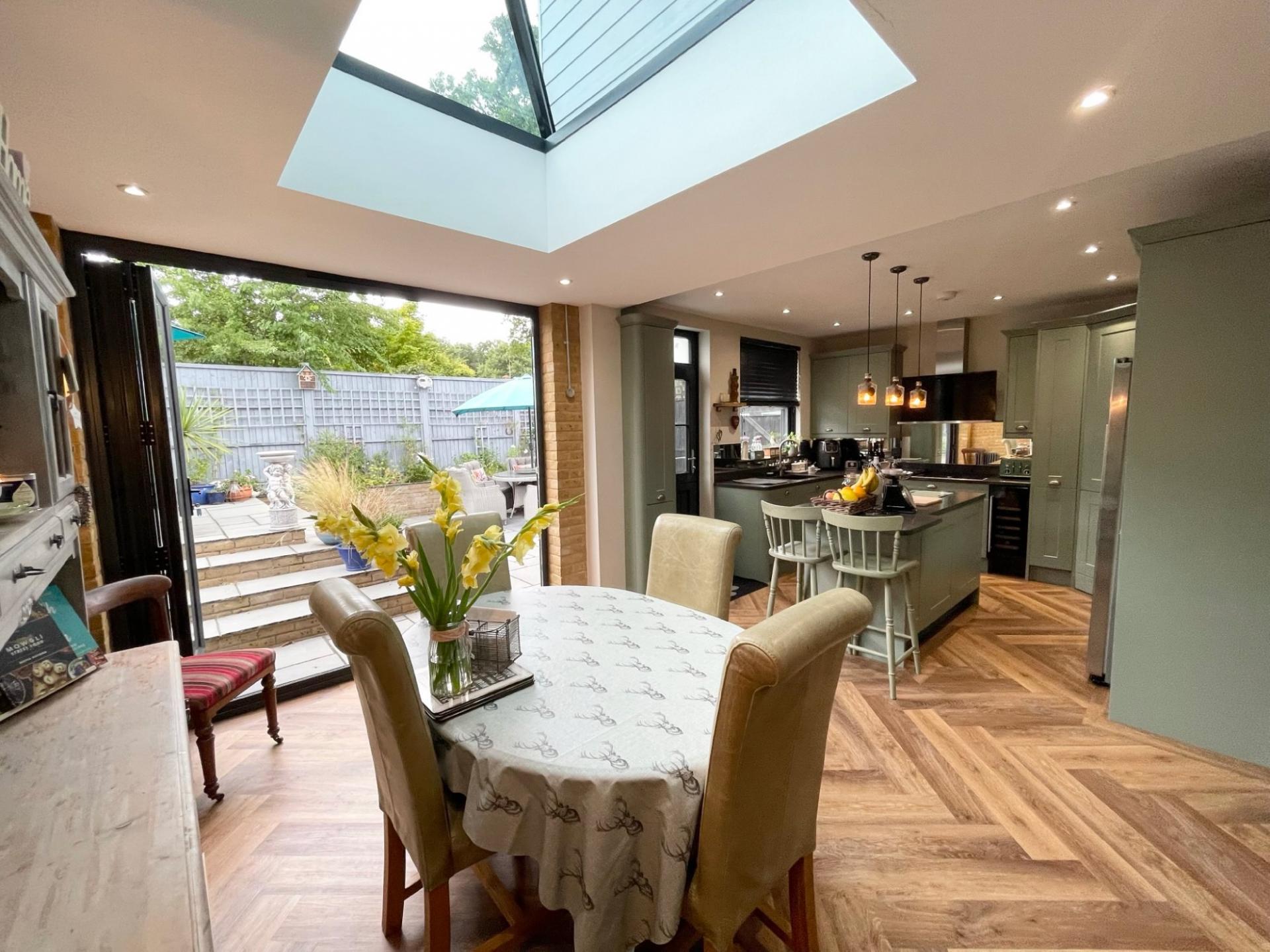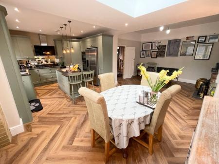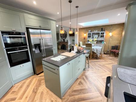 The well planned accommodation comprises three reception rooms comprising a stunning open plan living space with a lantern roof, bi-folding doors leading out to the landscaped rear garden and a beautiful kitchen with a matching range of eye and low level units, stone work surfaces, integrated appliances including, waist height pyrolytic oven, combination microwave, wine chiller, four ring induction hob with two gas burners, instant hot water tap as well as a fantastic corner larder cupboard. The formal drawing room is positioned at the front of the property adjacent to the study overlooking the front drive.