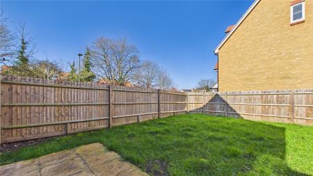 Outside, the property benefits from a well-maintained and fully enclosed garden, offering a high degree of privacy. Predominantly laid to lawn, the space provides excellent room for children to play or for outdoor entertaining. A paved patio area directly outside the rear doors creates an ideal seating or dining space, perfect for summer barbecues. The garden is bordered by newly installed timber fencing and enjoys a pleasant open outlook with a sunny aspect.