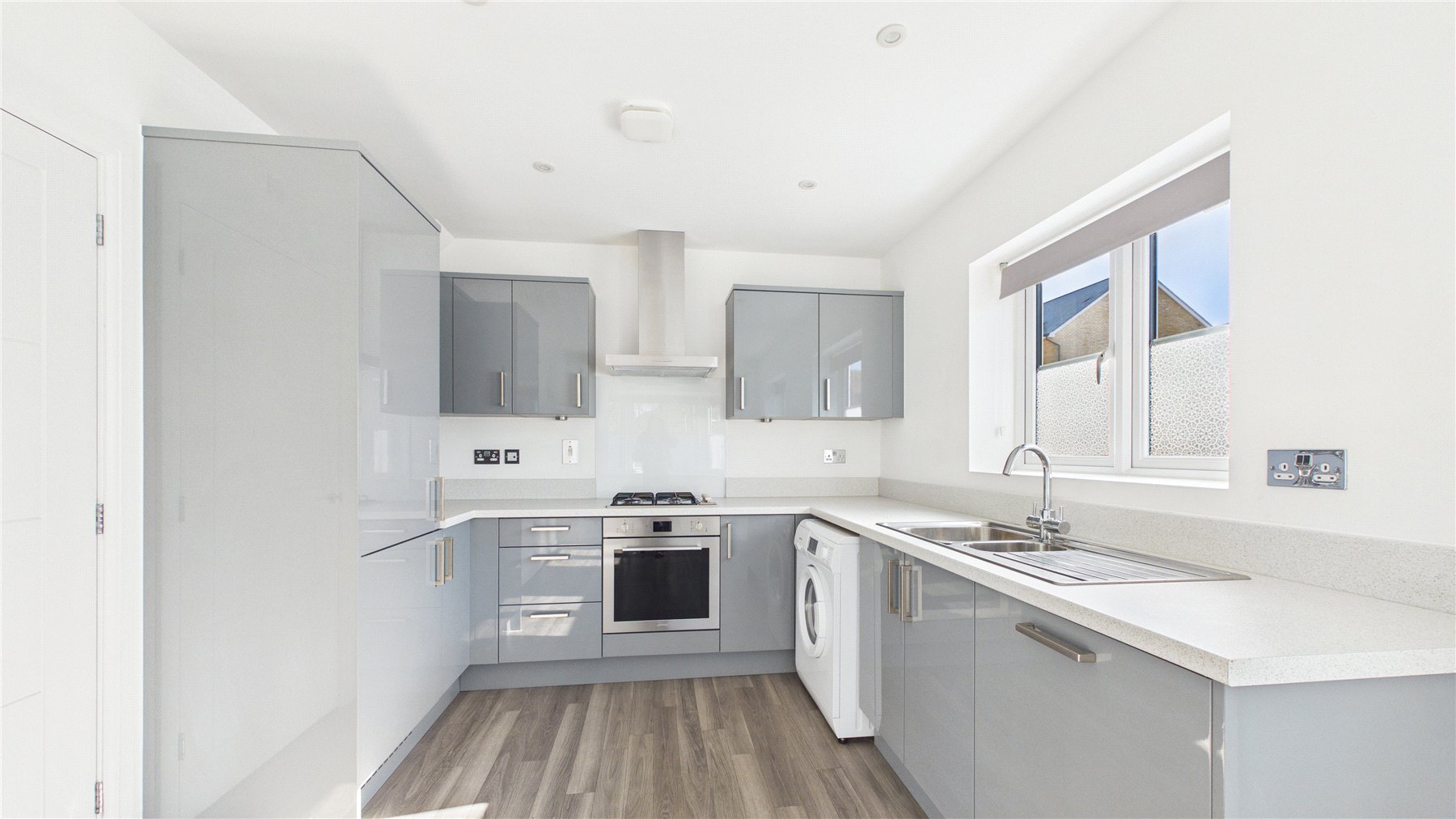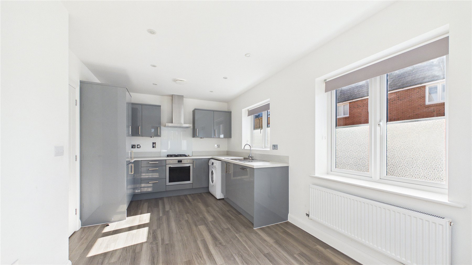 Stepping inside, the bright and airy entrance hall opens into a spacious living room measuring an impressive 16', providing ample space for both living and dining furniture.