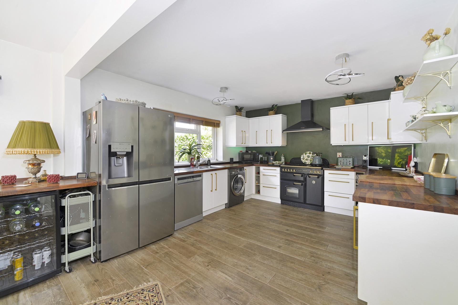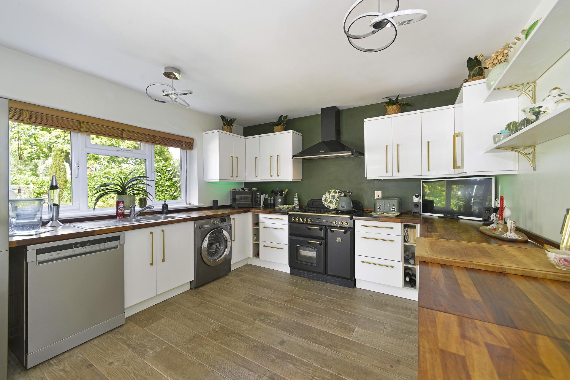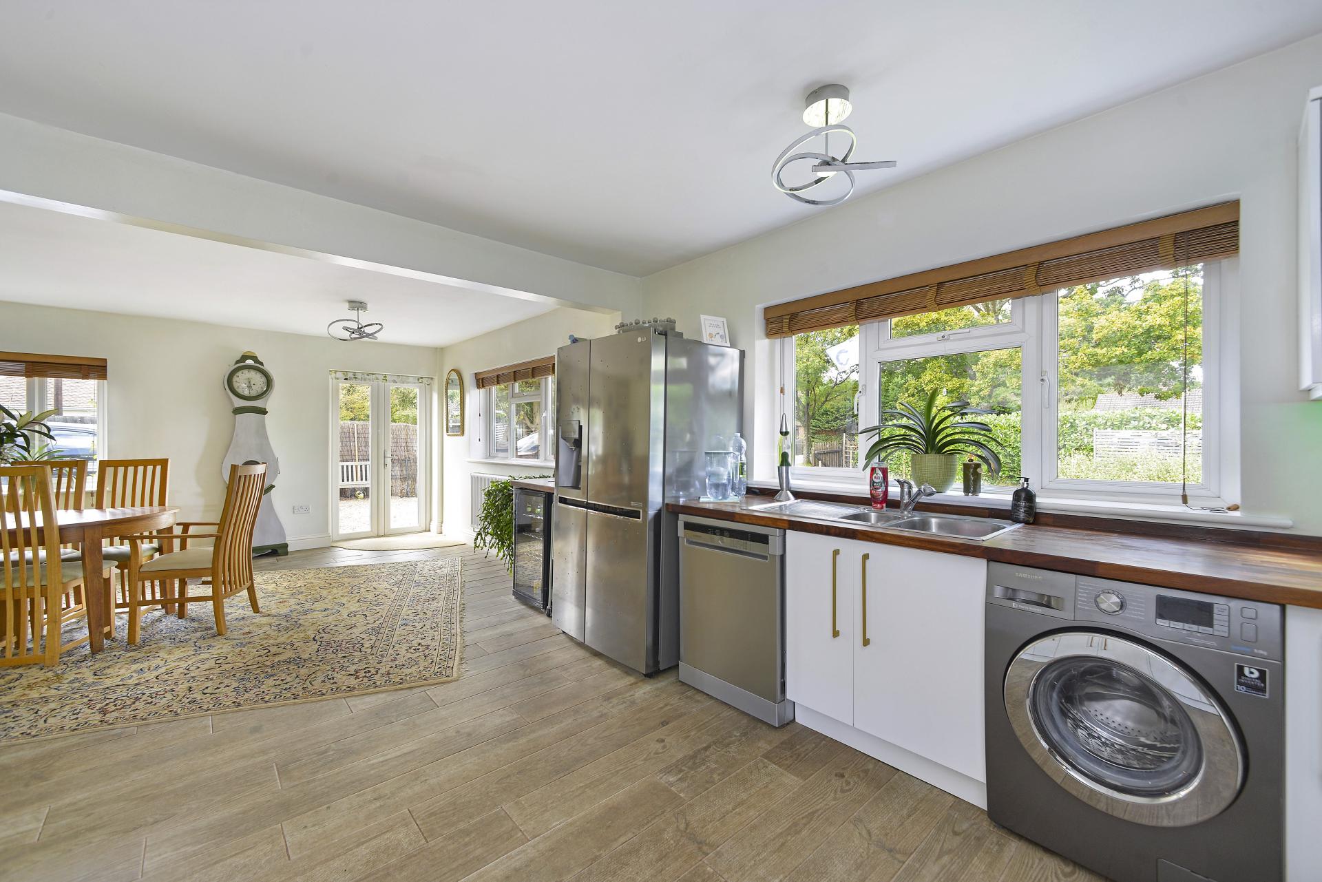 Spacious detached four bedroom chalet bungalow situated on a good sized garden plot in the semi rural village of Alfold. The property features a large open plan kitchen/dining room, sitting room with conservatory off, double bedroom with ensuite bathroom, two further bedrooms and a family bathroom on the ground floor. On the first floor there is a principal bedroom with fitted wardrobe cupboards and ensuite bathroom. Outside, the property is approached via double gates leading to an extensive driveway providing parking for numerous cars leading to a garage with adjoining workshop and a garden store. The rear garden is a lovely feature of the property having an extensive paved patio stepping onto lawns with well stocked flower and shrub borders in and around. We highly recommend a visit to fully appreciate the accommodation on offer and the property is offered for sale with no onward chain.