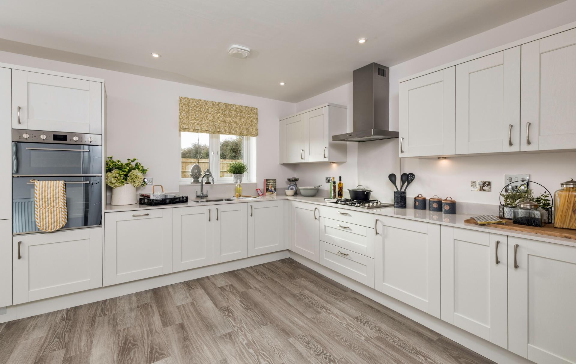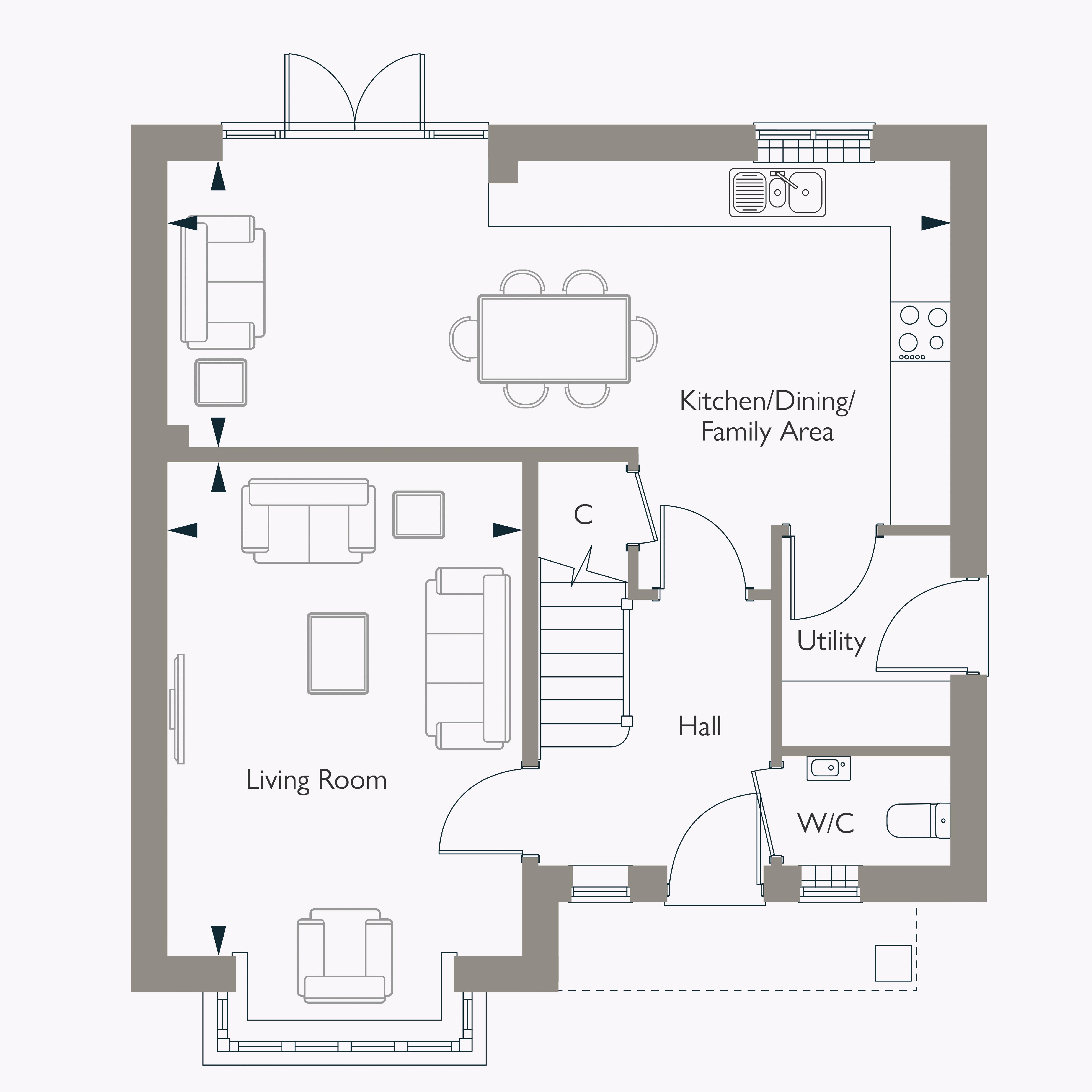 The hall leads through to the living spaces, with understairs storage and a cloakroom. The well-equipped kitchen/dining/family area offers the perfect space for entertaining. The French doors lead onto your patio and garden. You will also have a useful utility room.