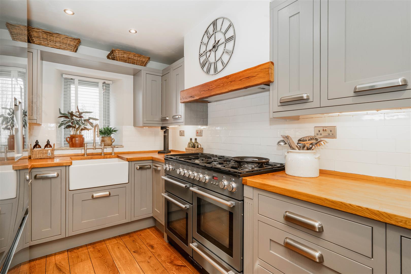 - Shaker kitchen with solid wood worktops, breakfast bar and Belfast sink