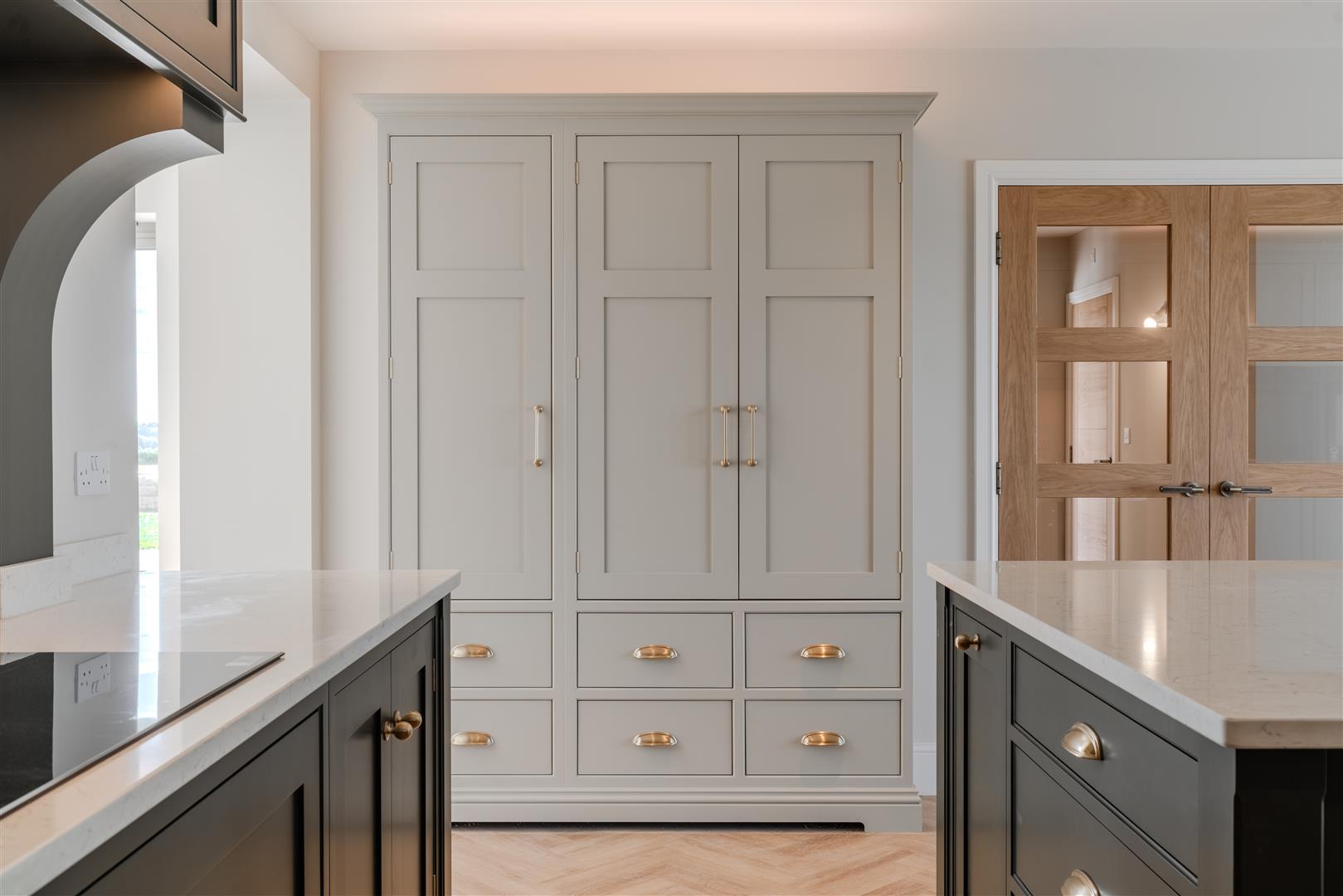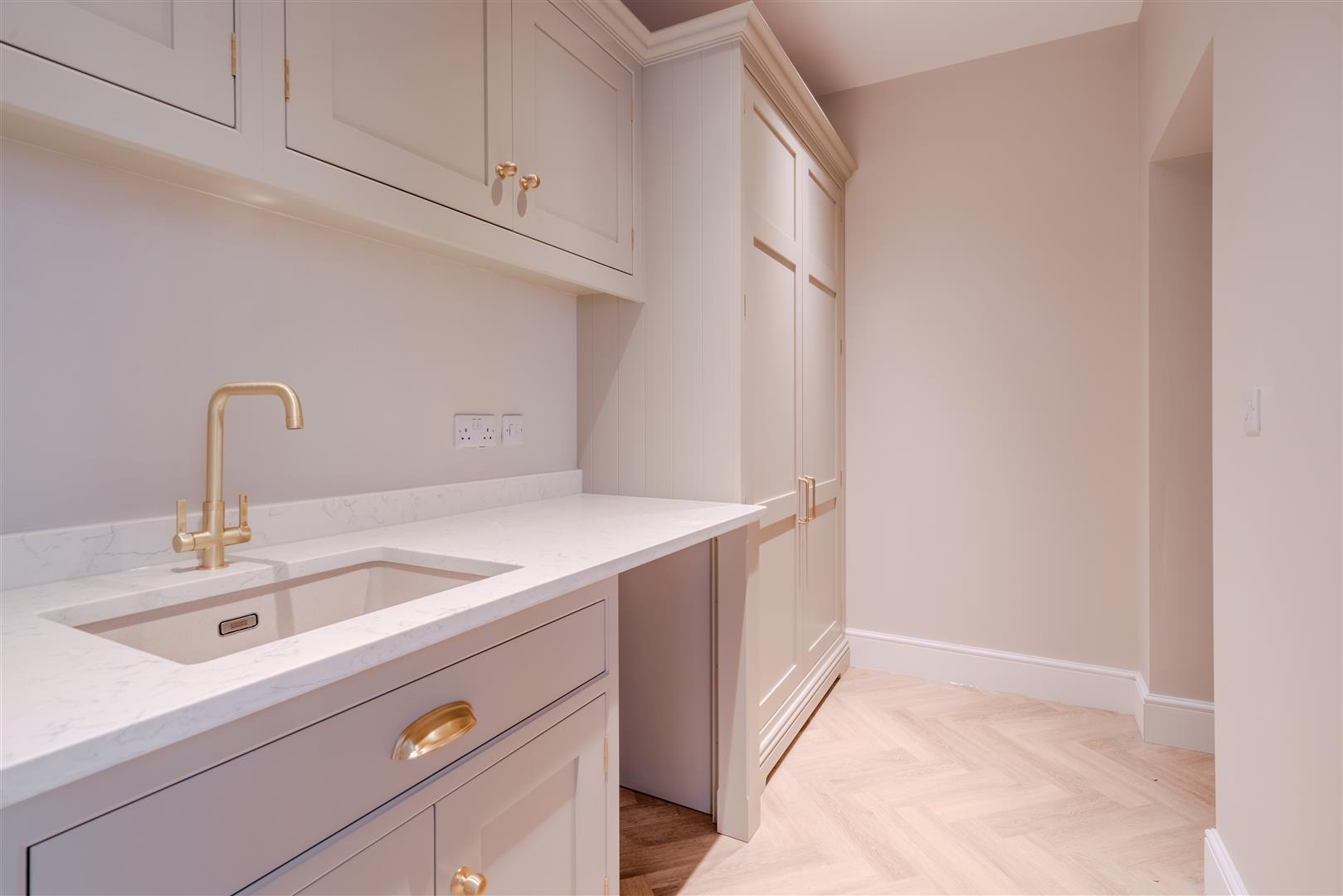 - Bespoke Pre Eminance island kitchen with hi-spec integrated appliances, quartz worktops and separate utility room