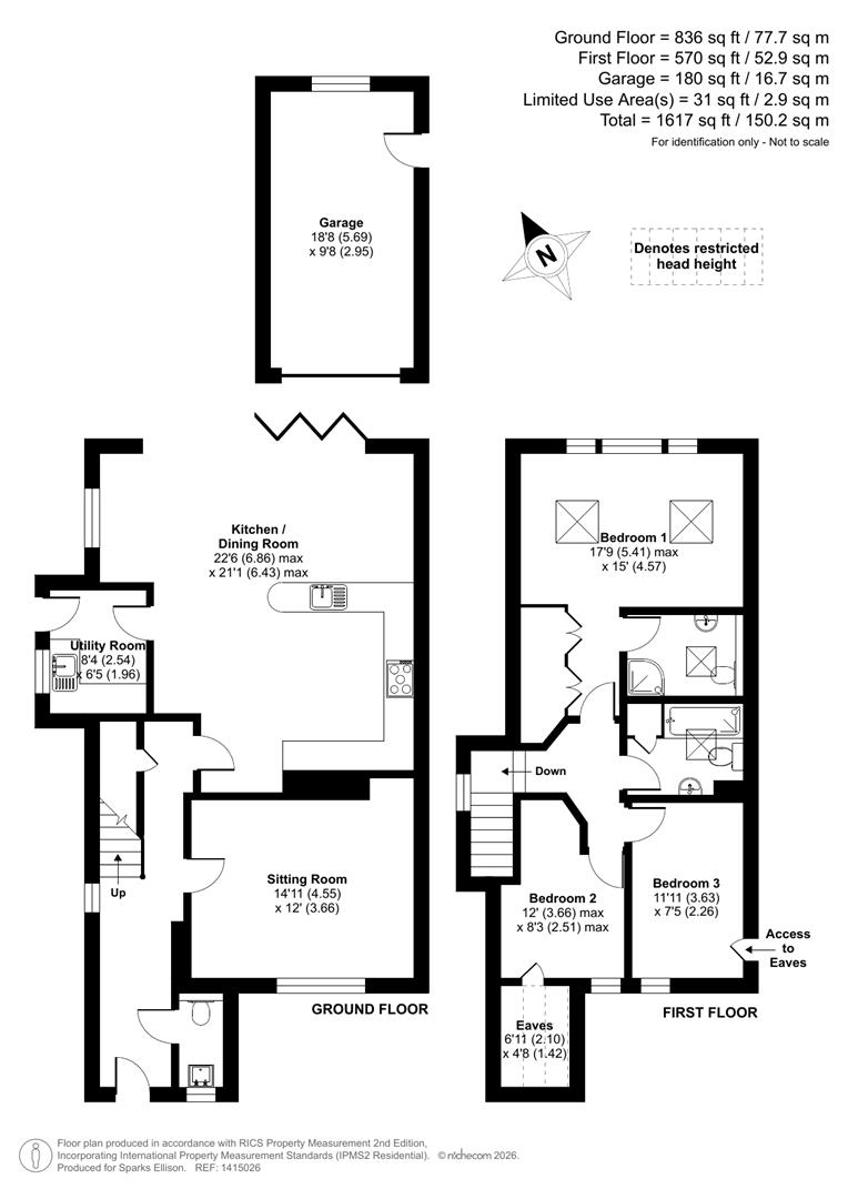 Approximate Area: - 1617 sq ft / 150.2 sq m