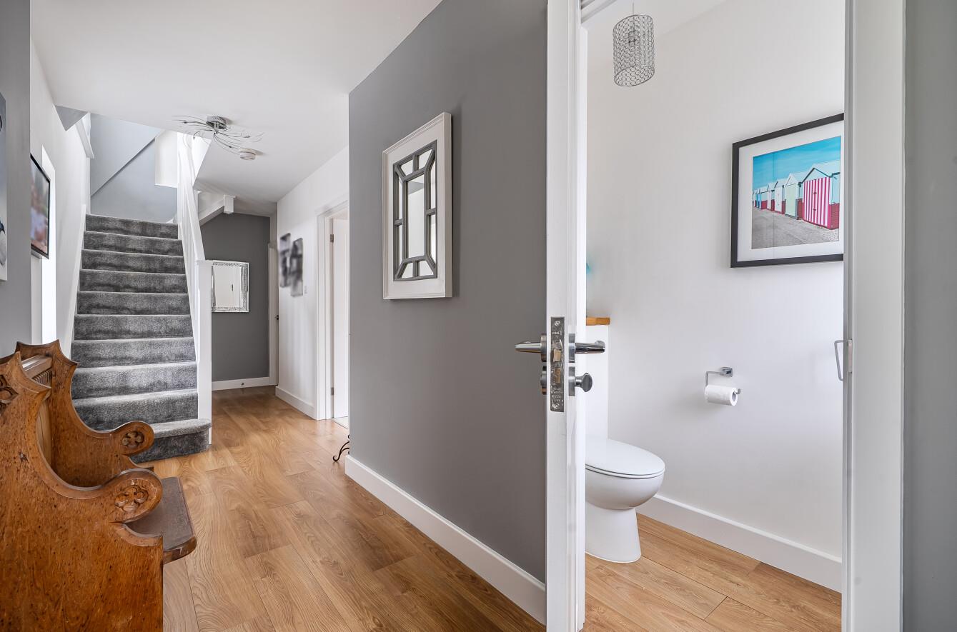 Cloakroom: - Wash basin with cupboard under, WC.