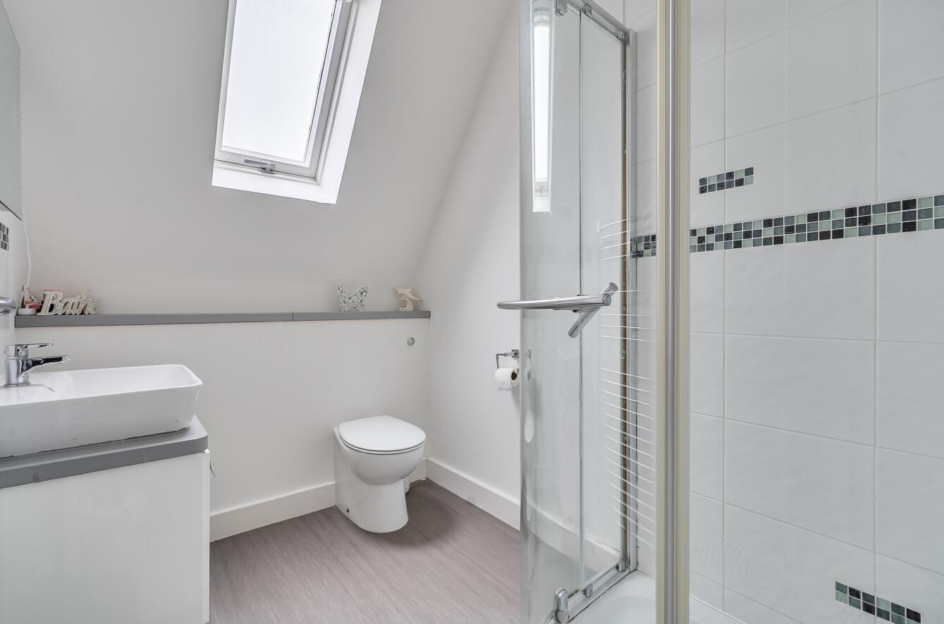 En-Suite: - Suite comprising shower cubicle with glazed screen, wash basin with cupboard under, WC.