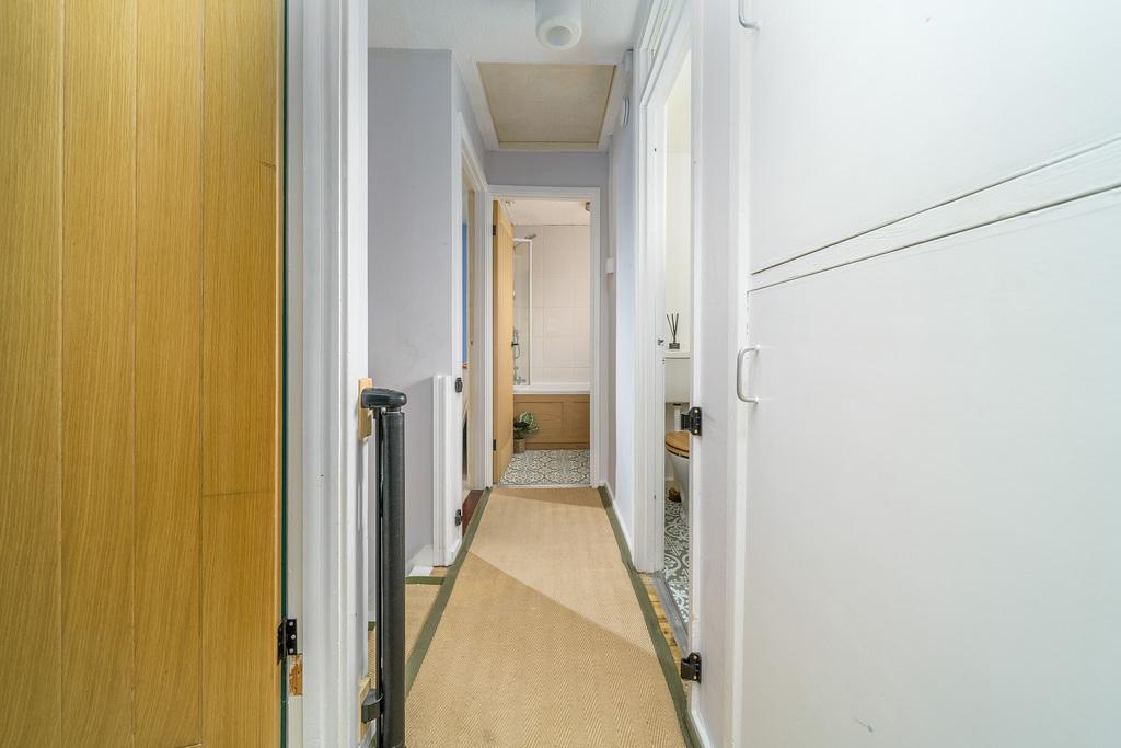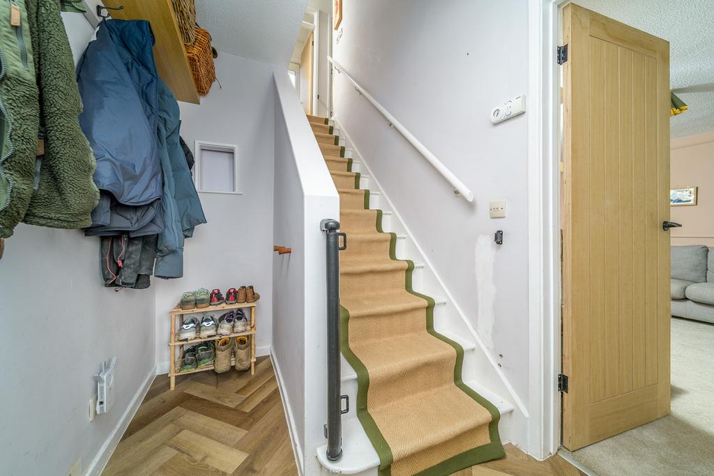 The front door opens into an entrance hallway, with herringbone LVT flooring which creates a stylish look. Stairs ascend to the first floor various doors lead off.