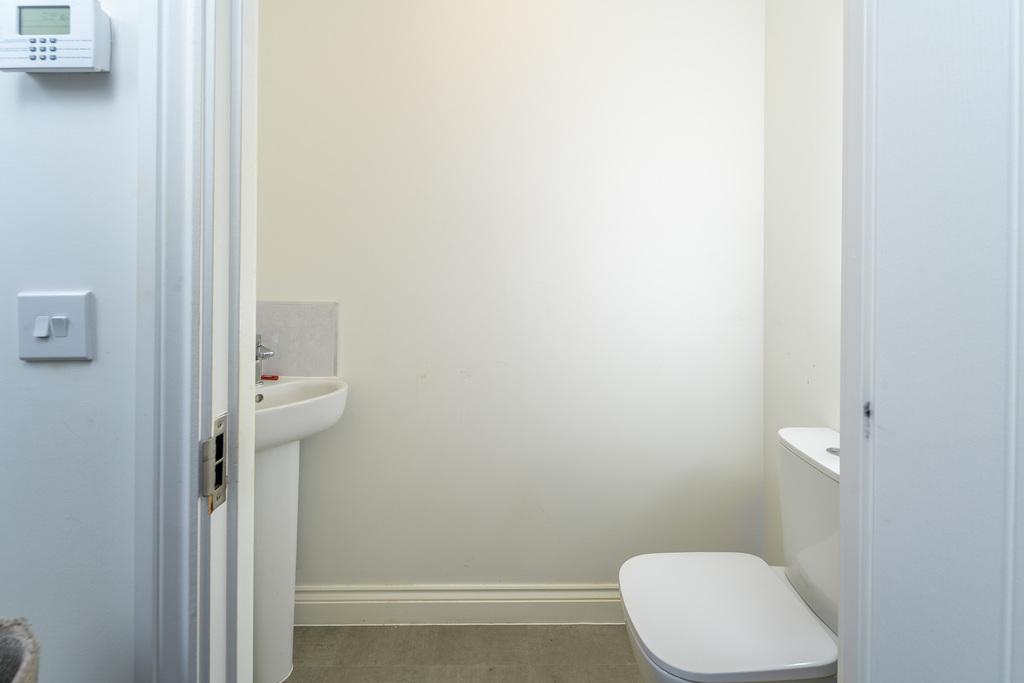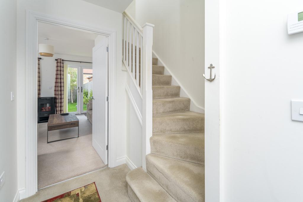 Entry is via the front door which opens into an entrance hallway, with beneficial fitted coir doormat, stairs ascending to the first floor and various doors leading off to the principal living spaces. The ground floor WC is conveniently placed to the right and comprises a close coupled toilet and a pedestal hand wash basin with a mixer tap above. This is a superb asset as it negates the need to continually frequent the upstairs facilities.