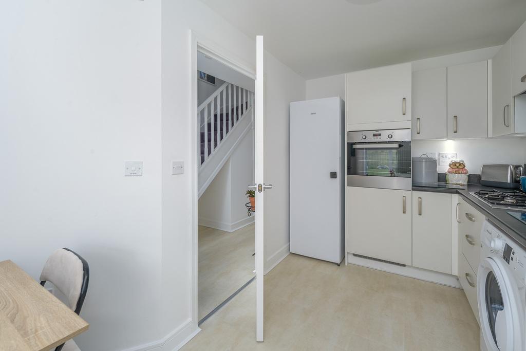 Situated at the end of the driveway and with a wrought iron fence framing the lawned front garden, this property offers a warm welcome with a central flowerbed and attractive borders adding charm as you approach. The front door opens into an airy entrance hallway with various doors leading off. Stairs, with useful storage beneath, ascend to the first floor and the mauve carpet adds a lovely hint of colour to the neutral décor throughout.