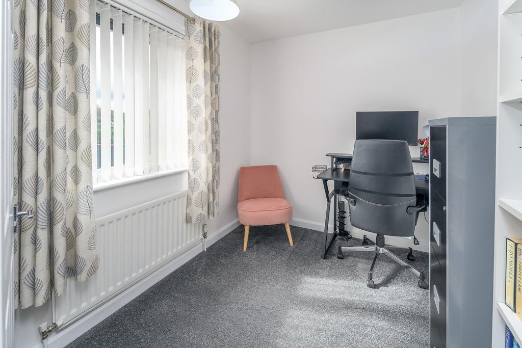 Bedroom 3 is a single room overlooking the rear garden. This room offers beneficial storage and is currently utilised as an office. All the bedrooms are beautifully presented and allow the easy addition of accent colour should you so wish.
