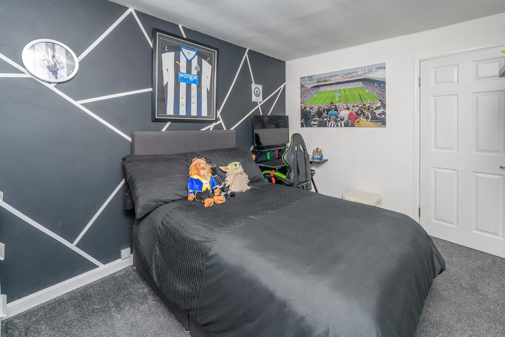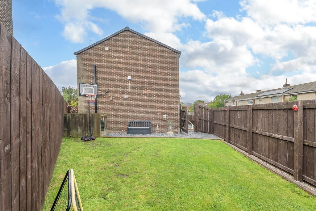 The side garden, entered via a gate, is mainly laid to lawn and is securely fenced to allow children and family pets to play safely. The garden captures lovely views of the Pele Tower before continuing round to the rear garden where there is a decked area ideal of al fresco dining with family and friends. There is a raised bed, currently containing pebbles, but offers space for planting flowers or growing vegetables if you so wished.
