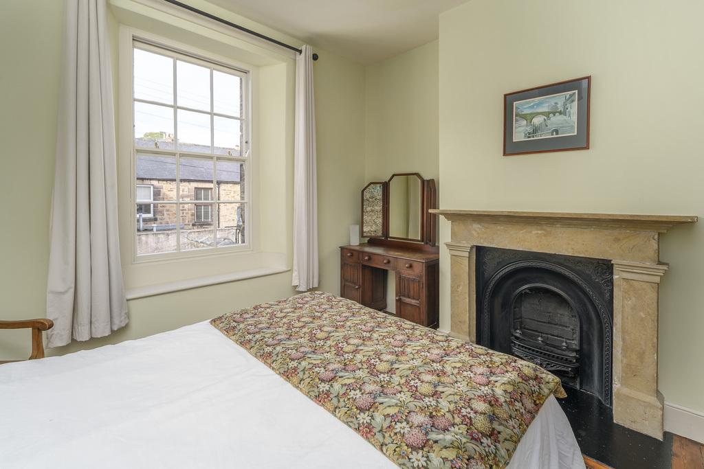 Bedroom 2 is to the rear of the property and is a spacious double room incorporating another stunning stone fireplace with a cast iron insert. The sash window allows a wealth of natural light to circulate in addition to capturing pleasant courtyard views.