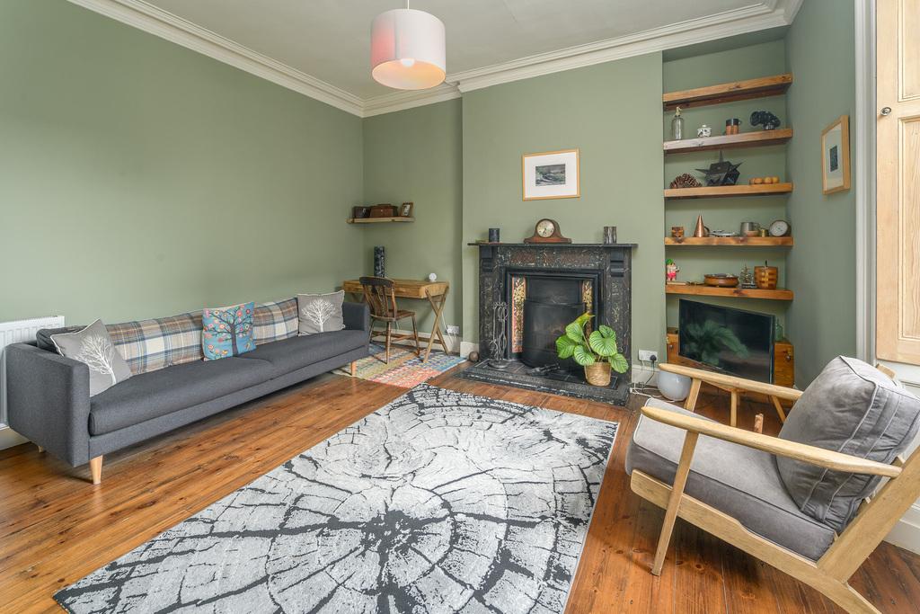 The second reception room is spacious and airy with period features including a ceiling rose and a picture rail. A stunning black original range made by Revels in Alnwick forms an exquisite focal point, a built-in cupboard with glass doors above offers storage and two large wooden sash windows overlook the rear courtyard and allow plenty of natural light to circulate. This multi-use room could be utilised as a dining room if you so wished or a home office or hobby room.
