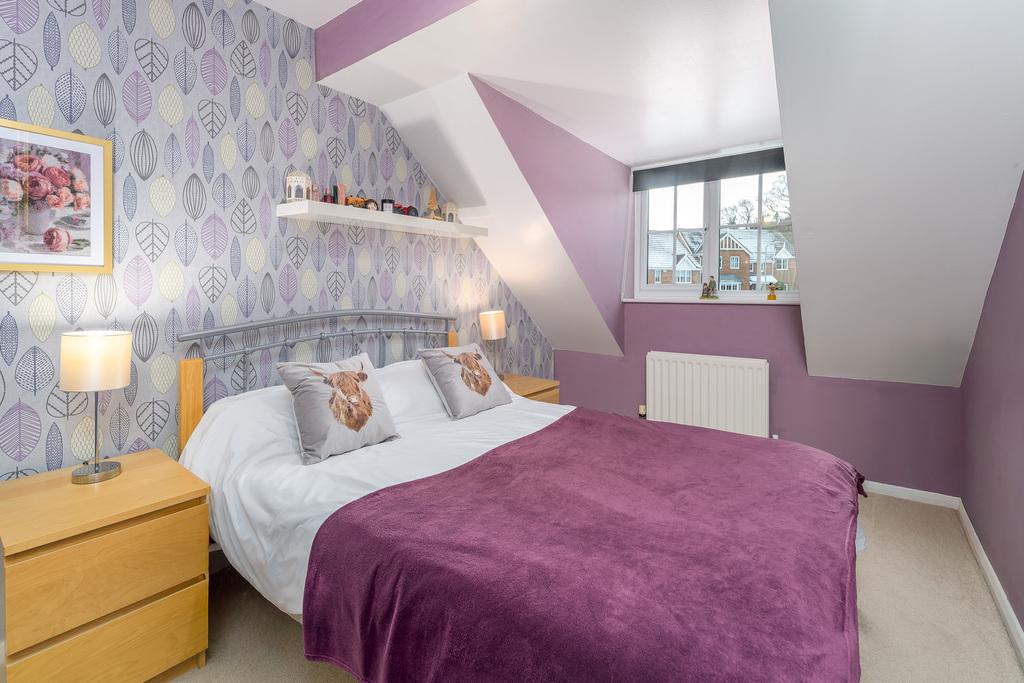 Bedroom 2 is a good-sized double room with a dormer window capturing views over the countryside. This restful room offers spacious built-in wardrobes.