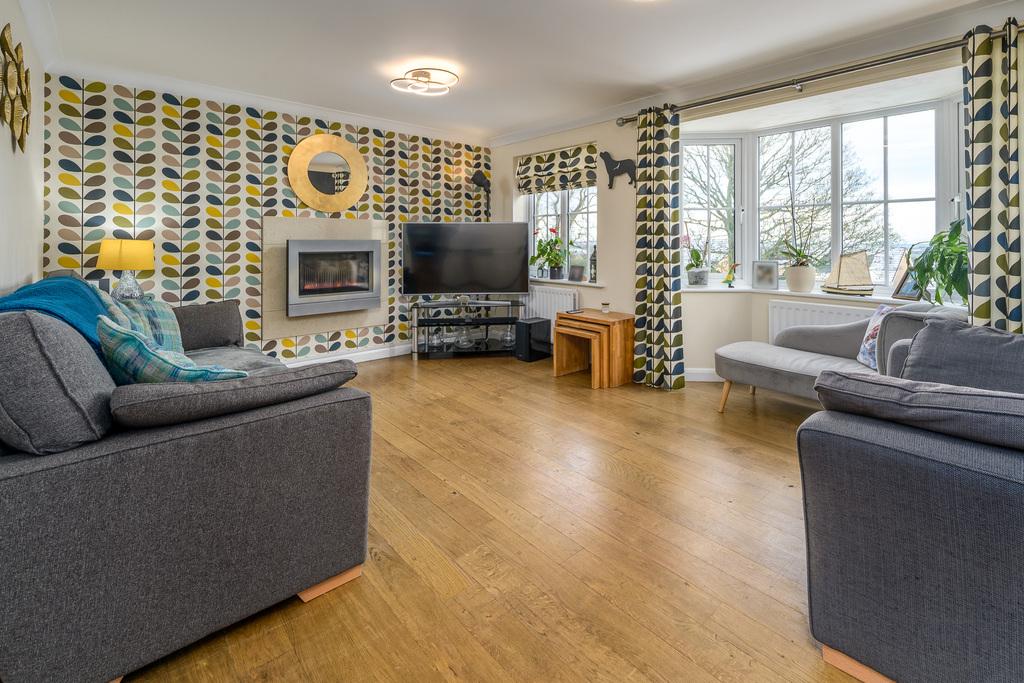 Bathed in natural light, the lounge is a glorious room with a large bay window capturing views of the rear garden and, due to its elevated position, far reaching views over towards the coast. There is a wall mounted gas feature fireplace which is an attractive focal point enticing you to sit before it during the cooler months and access to the cupboard beneath the stairs is beneficial. Wood plank Karndean flooring completes the look and works in harmony with the overall elegant design of the room.