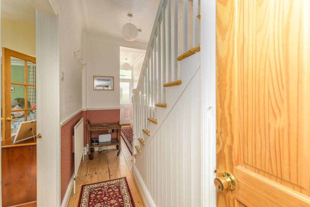 The low maintenance front garden, entered via a wrought iron gate, is a superb place in which to catch the sun whilst enjoying a cup of coffee or a glass of wine. The front door opens into an internal porch which offers a warm welcome. A wood and glass door leads into the main hallway which boasts high ceilings, original coving and dado rail in addition to the original stripped wooden floorboards. Various doors lead off and stairs, with storage beneath, ascend to the first floor.