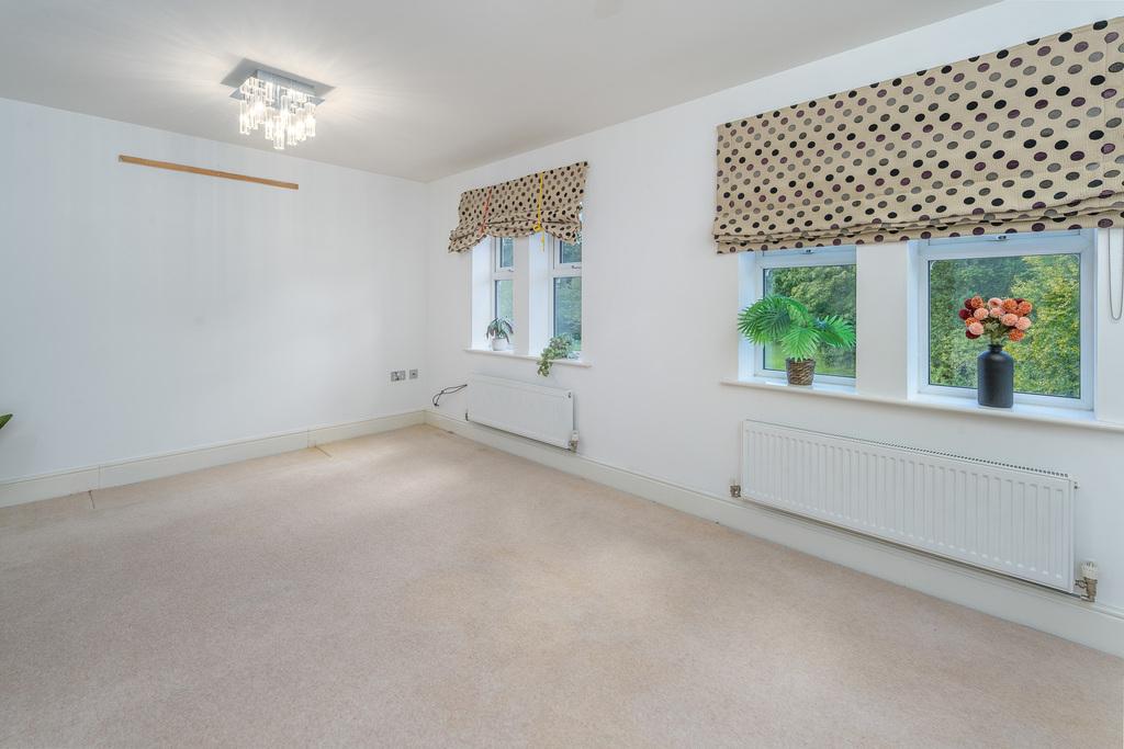 Bathed in natural light, the ground floor lounge, finished with chrome switches and sockets, is an inviting space in which to spend time with family and friends. Two windows take advantage of the rear garden views, with mature trees forming a pleasant backdrop, and a pair of French doors open out onto a paved rear garden which is ideal for al fresco dining.