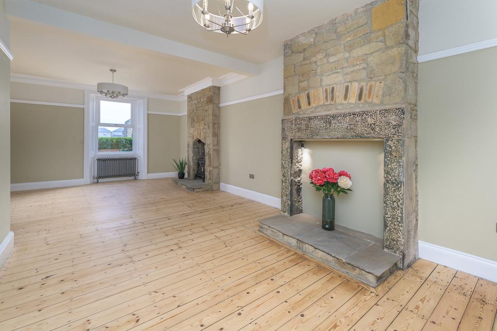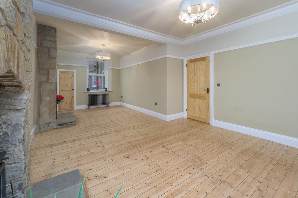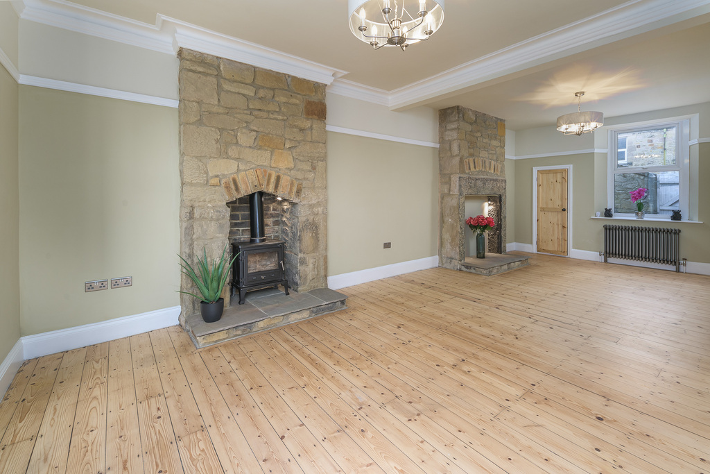 The lounge-diner, with original stripped wood floorboards, picture rail, large skirting boards and beneficial storage, is a wonderfully inviting room with two glorious stone fireplaces with stone slab hearths forming pleasing focal points which are illuminated by a wealth of natural light entering via two large windows. Embracing natural and earthy tones beautifully, this is a superb room in which to spend time with family and friends exchanging stories of the day.
