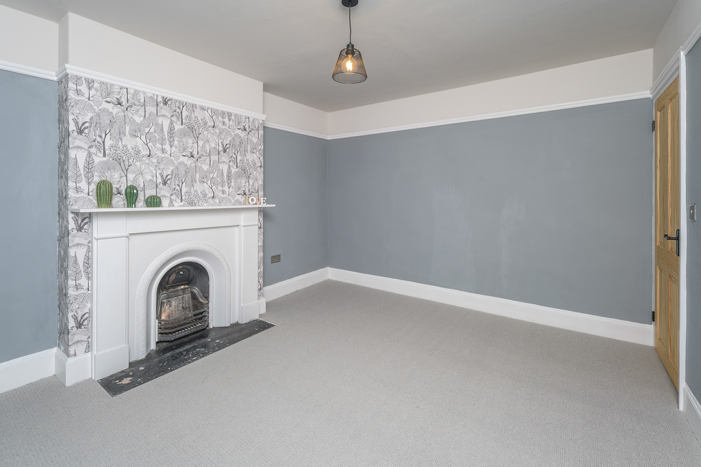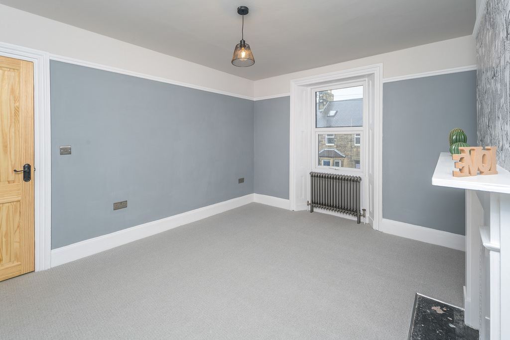 The primary bedroom is a spacious double with a large uPVC window overlooking the front of the property. A cast iron fireplace with a slate hearth forms an exquisite focal point, and a Victorian style radiator adds further comfort.