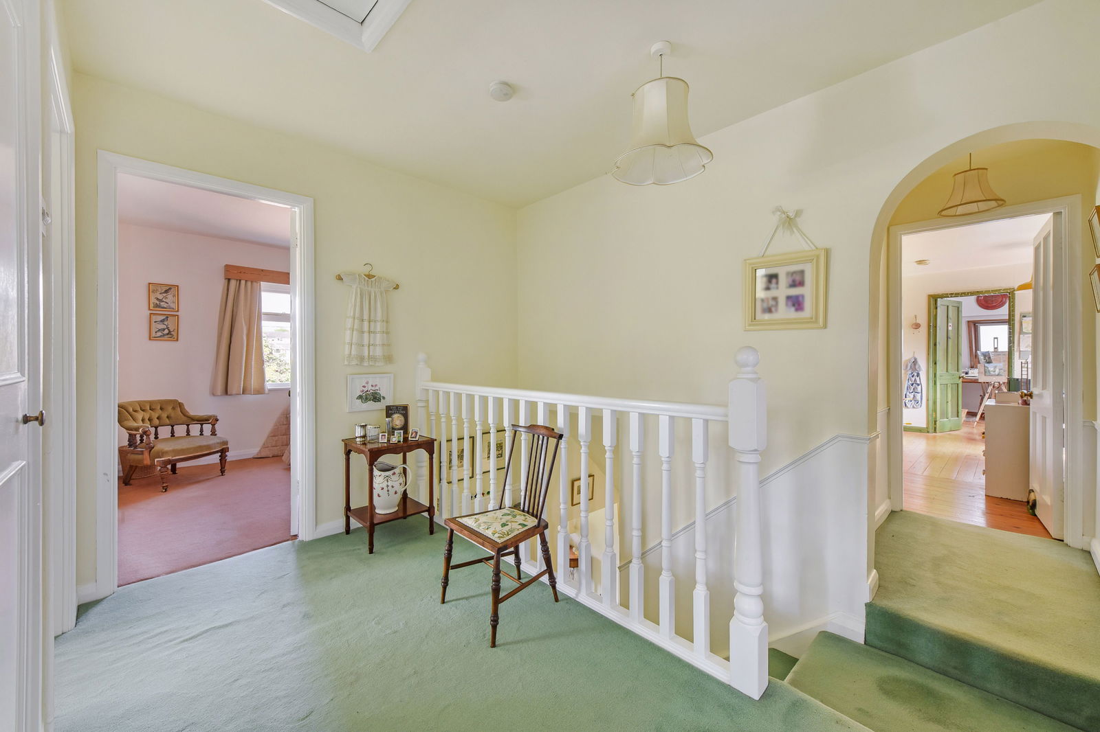 The front door of the house opens to the entrance hall, where there is a cloakroom and the stairs to the first floor. The spacious sitting room enjoys views of the garden, which can be accessed via French doors. Beyond there is a library/family room, dining room, fitted kitchen and breakfast room leading to utility/boot room.