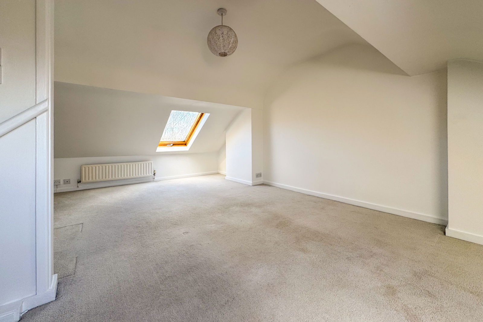 On the first floor, the principal bedroom to the front is particularly generous and filled with natural light, again featuring a fireplace. A second double bedroom overlooks the rear garden, complemented by a well-proportioned family bathroom. Stairs rise to q loft room, which has Velux windows.