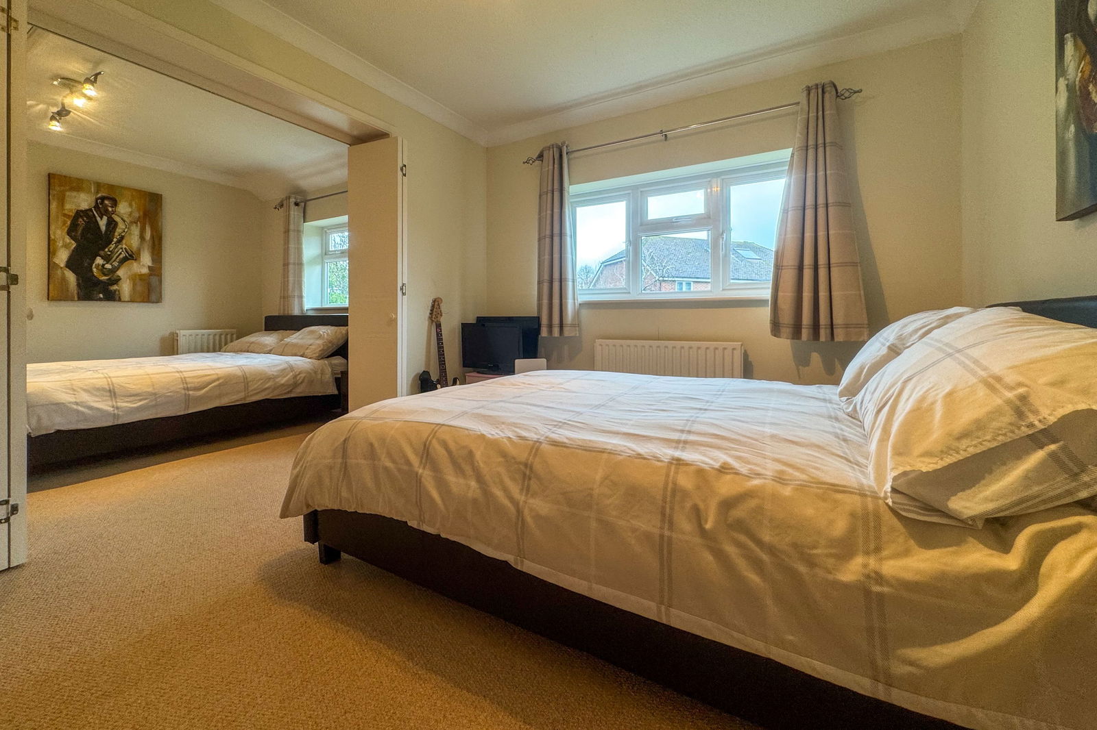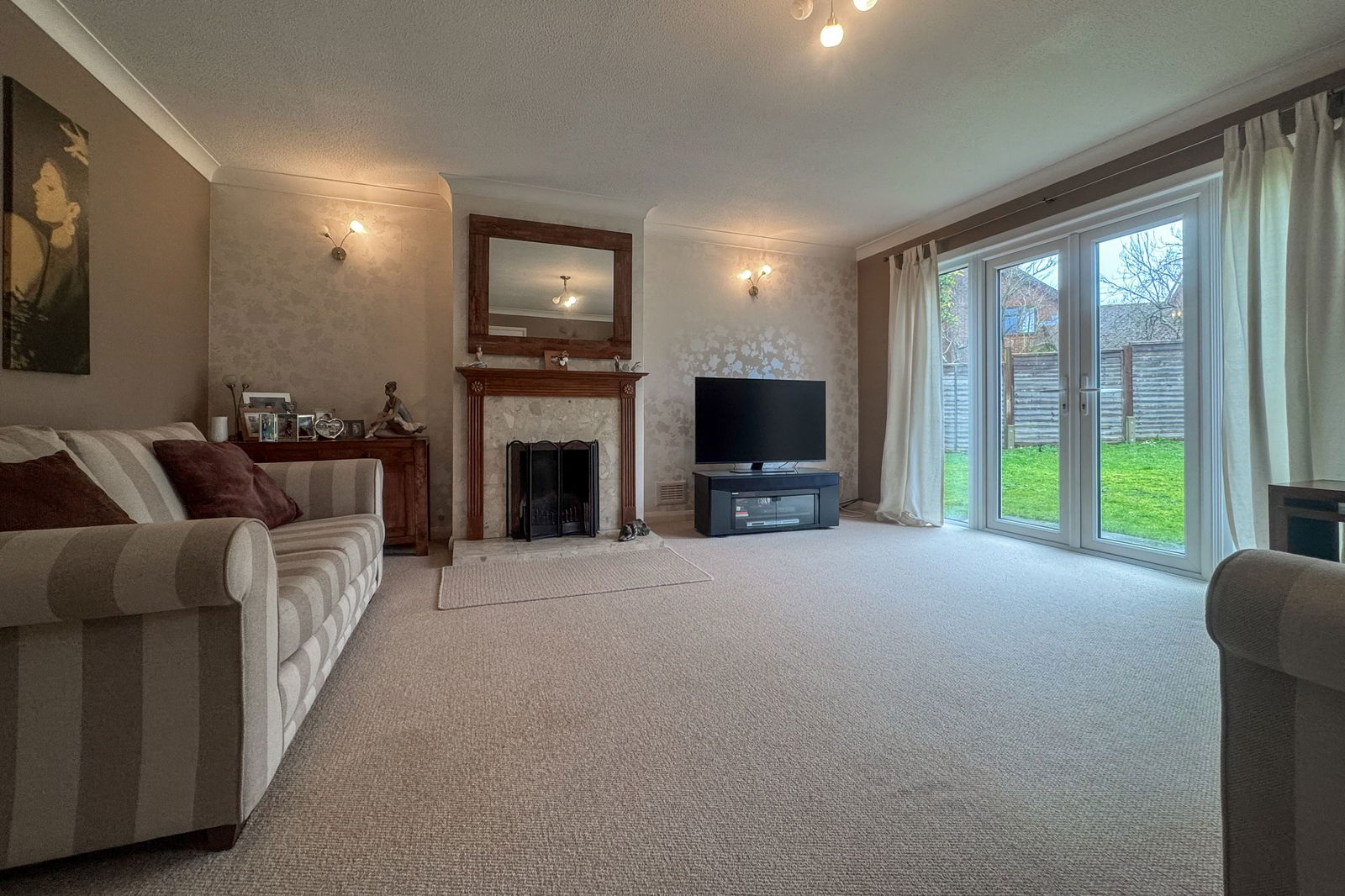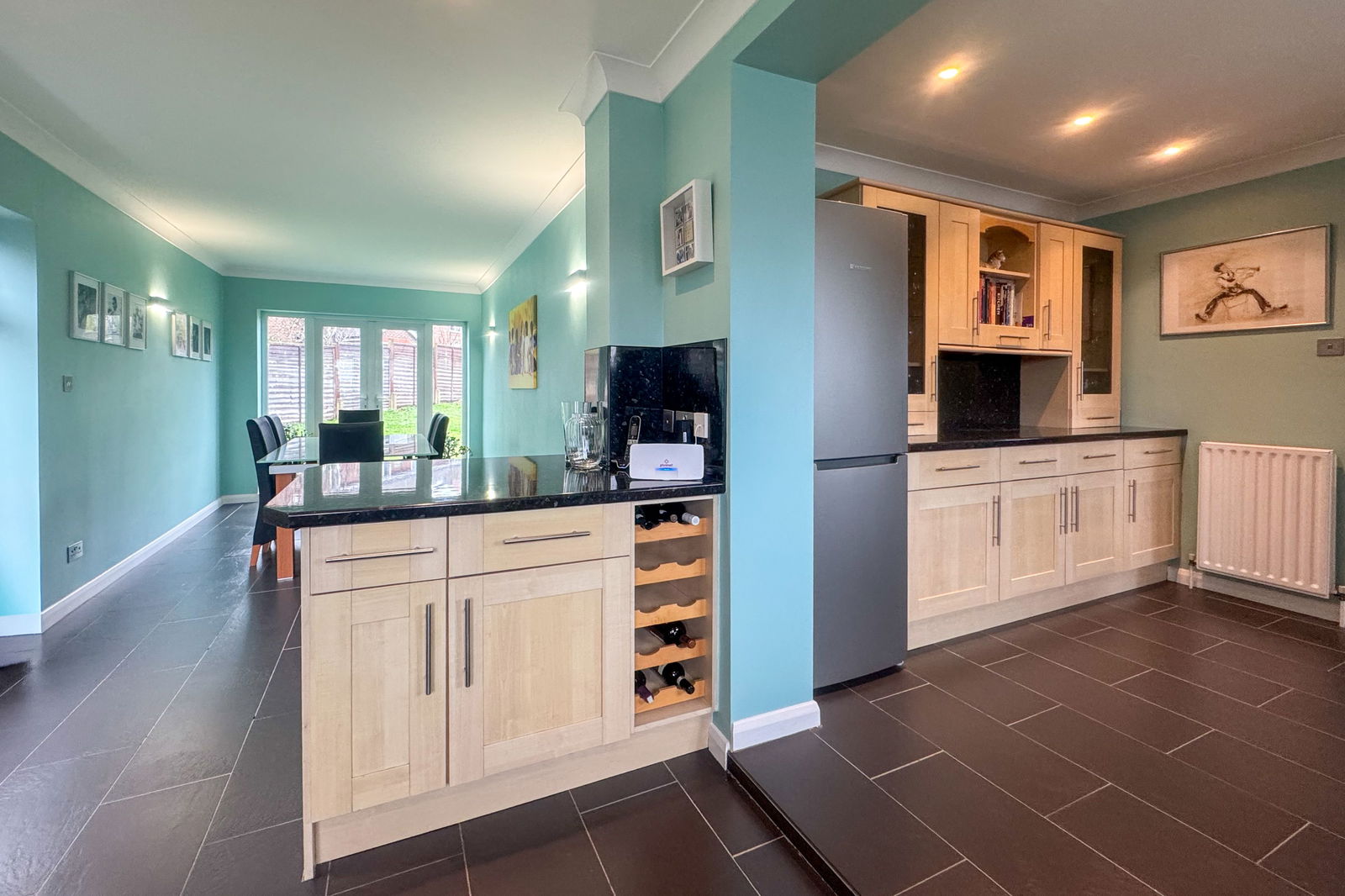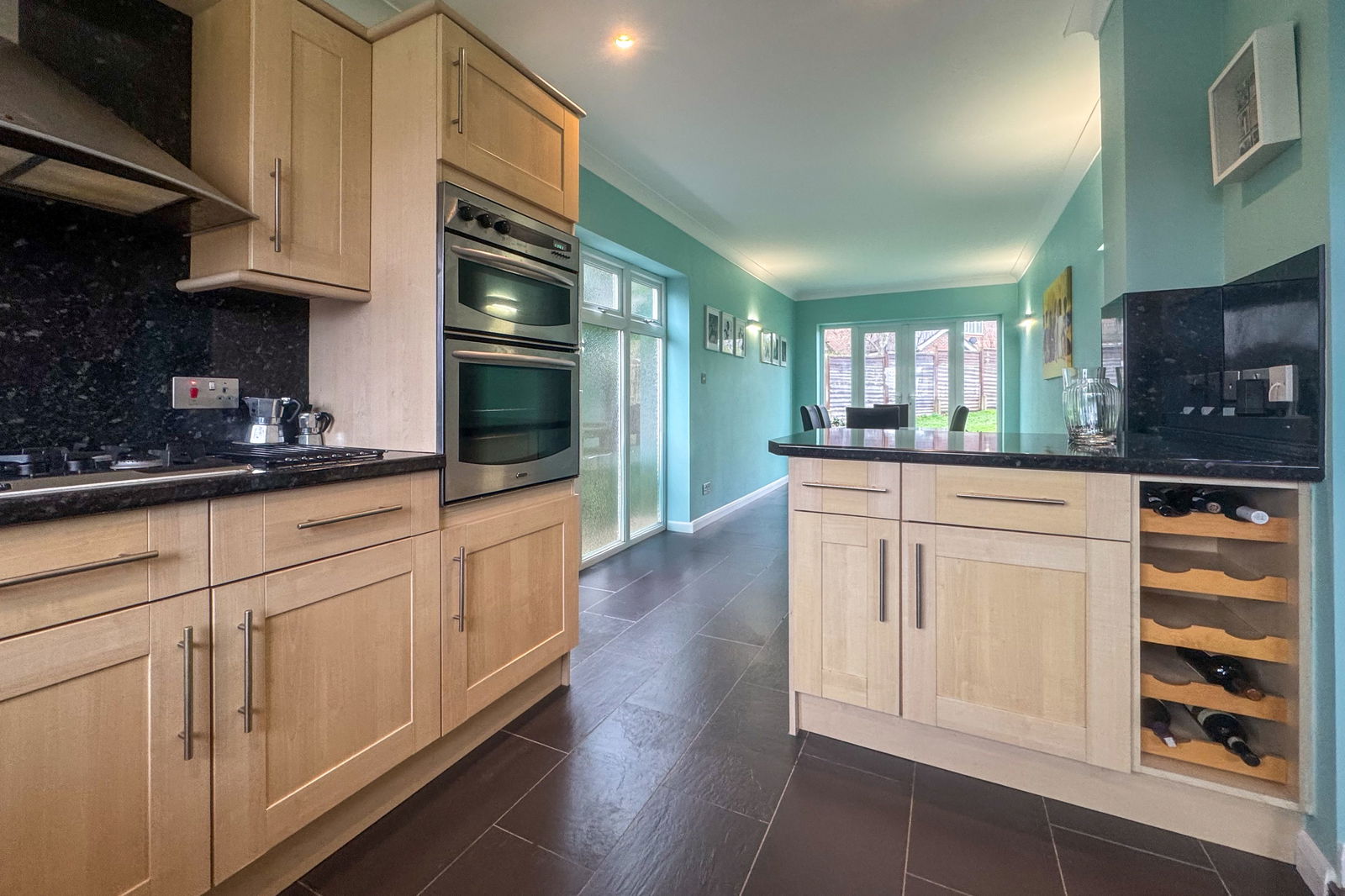 The heart of the home is the impressive L-shaped kitchen/dining room, created through a side extension and designed perfectly for both everyday living and entertaining. With double doors opening directly onto the garden, this space offers seamless indoor-outdoor flow and an abundance of natural light.