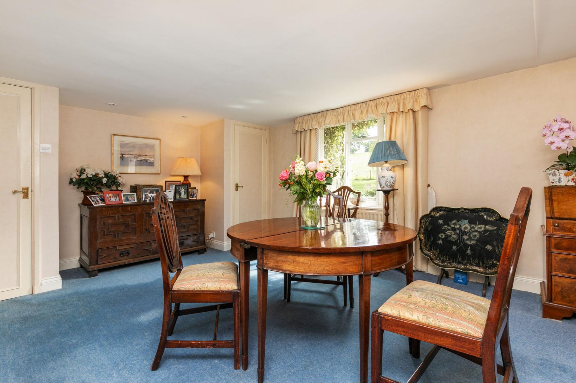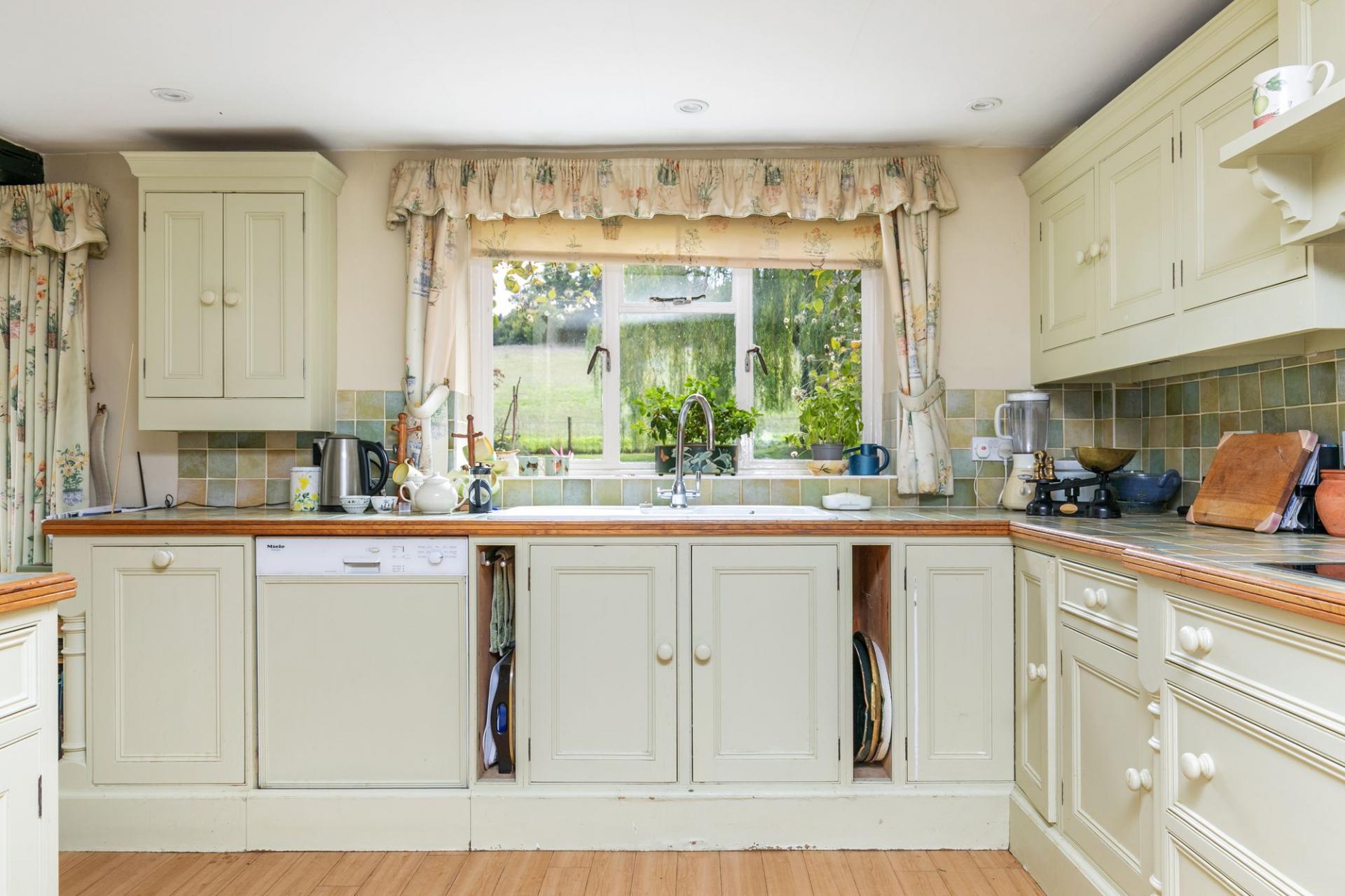 Oak Cottage is a delightful period ‘long cottage’ behind a red brick façade with inset casement windows, under a clay tiled roof to the front, and a brick and flint rear elevation. Most of the rooms are double aspect creating a lovely light and bright feel. The sitting room has an open fireplace and French doors that open into the garden. The kitchen/dining room is fitted with a range of hand painted units with integrated appliances and space for a table. There is a utility room and boot room. The first floor has a principal bedroom with an ensuite bathroom; there are three further bedrooms and a shower room.