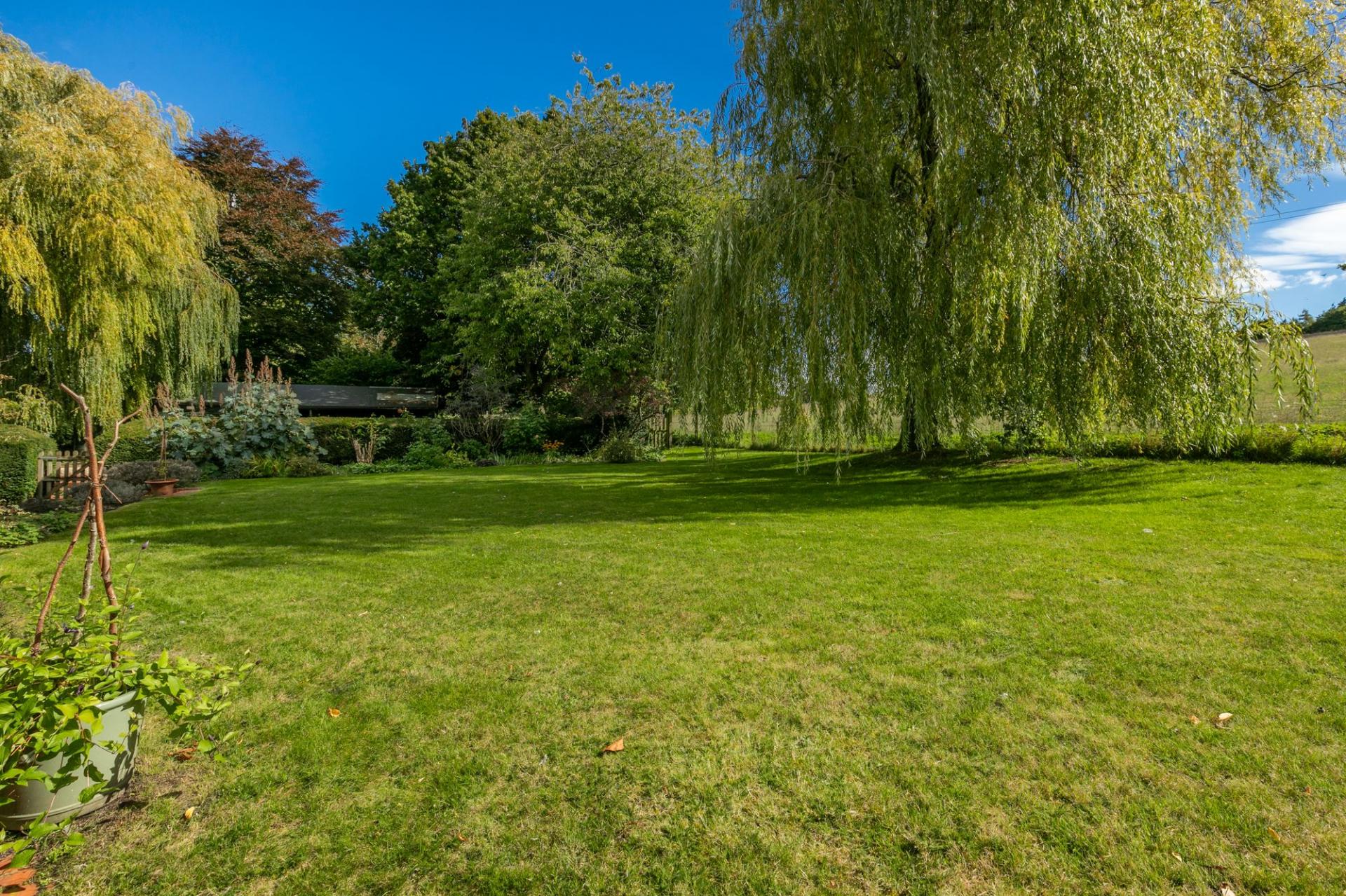 Outside, the property is approached by a brick path to the front door with a low-level hedge and planted borders. A five-bar gate opens onto a gravel driveway that provides plenty of parking and accesses the timber double garage, stables and store/tack room. The gardens are a delight; there is a terrace directly behind the house with a shaped brick and flint wall with steps that graduate onto the lawn, with flower and shrub beds and several lovely trees. The rear garden backs onto open farmland and the garden faces south.