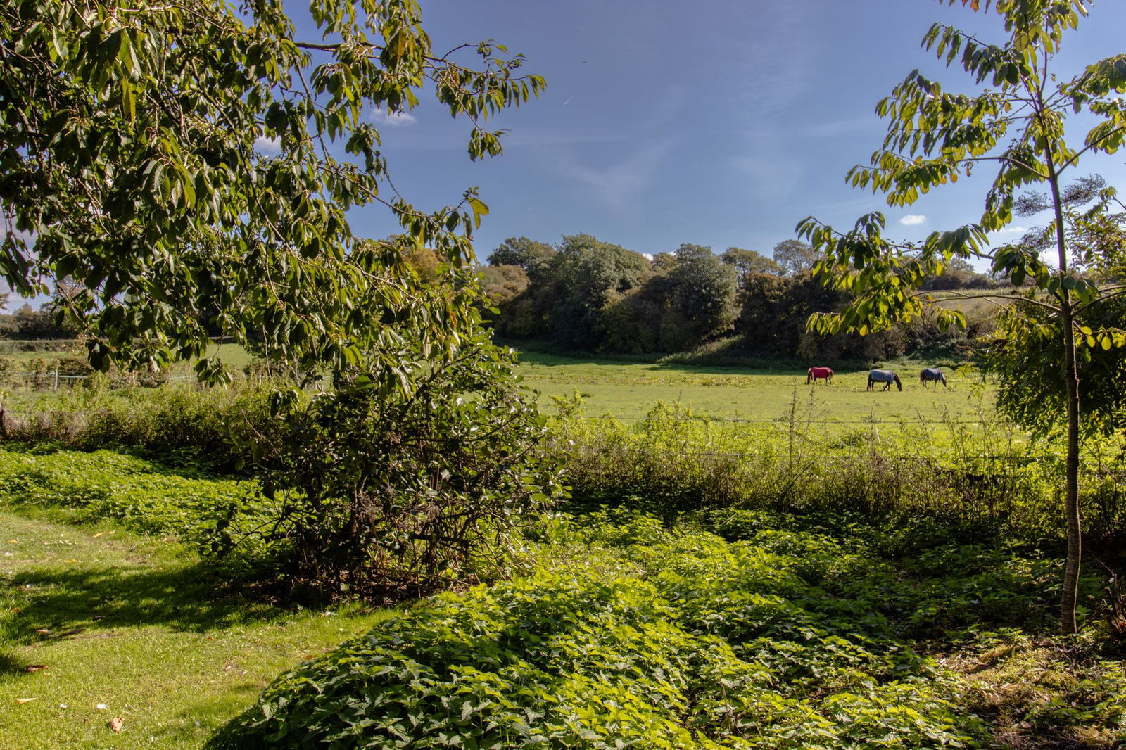 Outside, the property is approached via a 5-bar gate and gravel driveway to a parking area in front of the house. There is an integral carport and adjoining storage room with wooden doors. The garden sweeps around the property, with a large lawned front garden, a side garden with views over fields/paddocks and a rear garden.