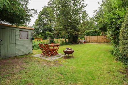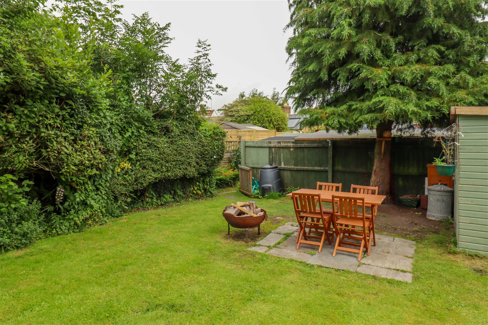 To the rear of the property there is a shared patio area with steps up to a pathway that leads to the private rear garden, which is mainly laid to lawn with mature hedging.