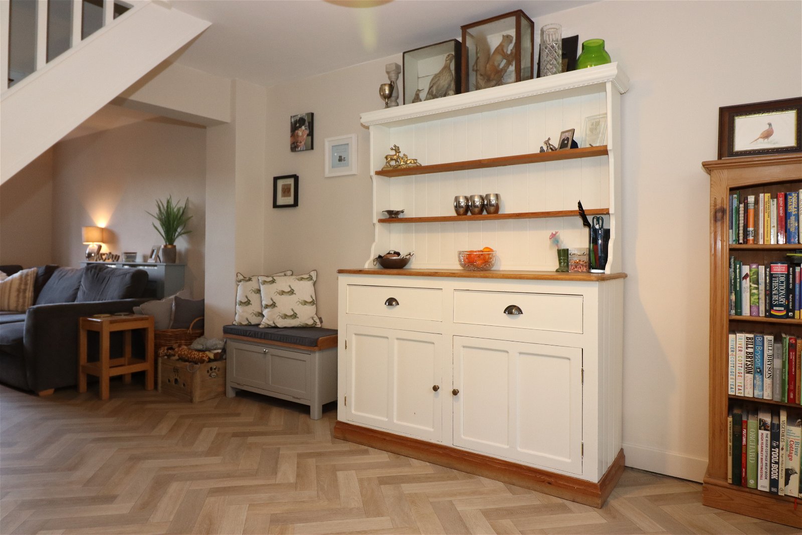 On entering the property via the covered porch you step into the sitting/dining room (previously two rooms) with a central staircase leading to the first floor, thus still providing the property with a defined area for a dining table. This in turn leads through to the kitchen which has ample storage and a door to outside.