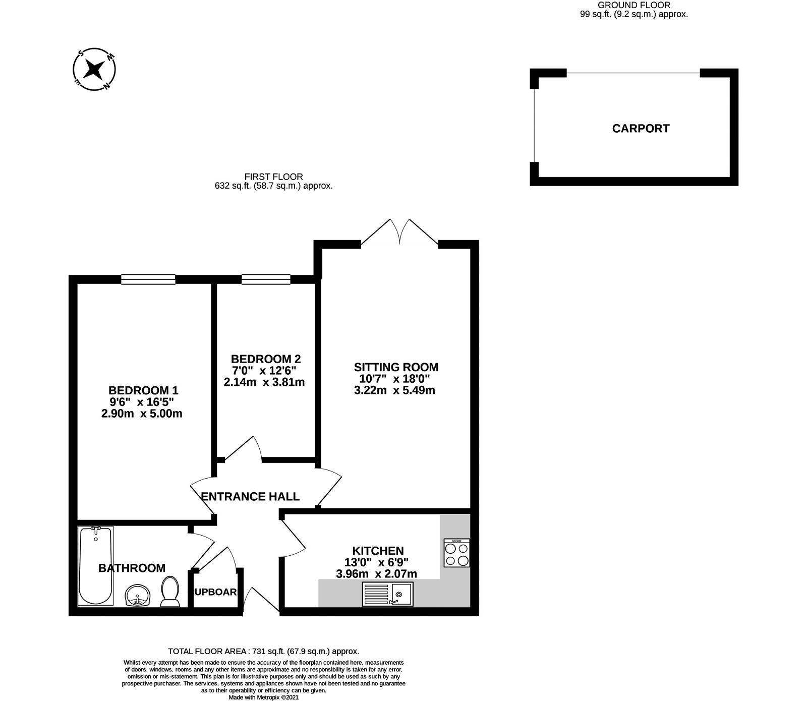The property has galleried first floor terrace entrance with a private front door opening to the entrance hall with access to all rooms, to the right there is a modern kitchen with eye and floor level units, built in electric oven and hob and a single drainer sink unit. A modern white bathroom suite with panel enclosed bath with shower attachment, wc, pedestal wash hand basin. There is a south facing sitting room/ dining room with a Juliet balcony overlooking the rear courtyard, parking and the allocated carport.